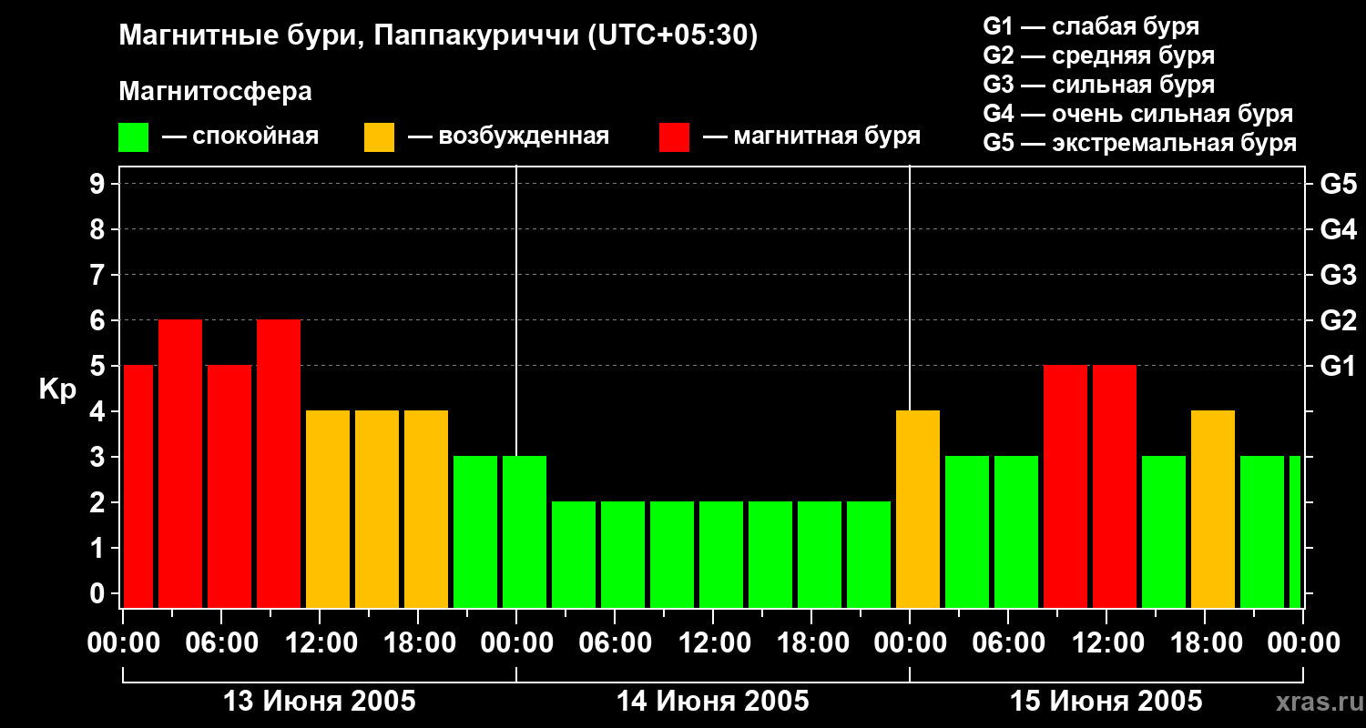 Магнитные бури Паппакуриччи 15 июня 2005 года