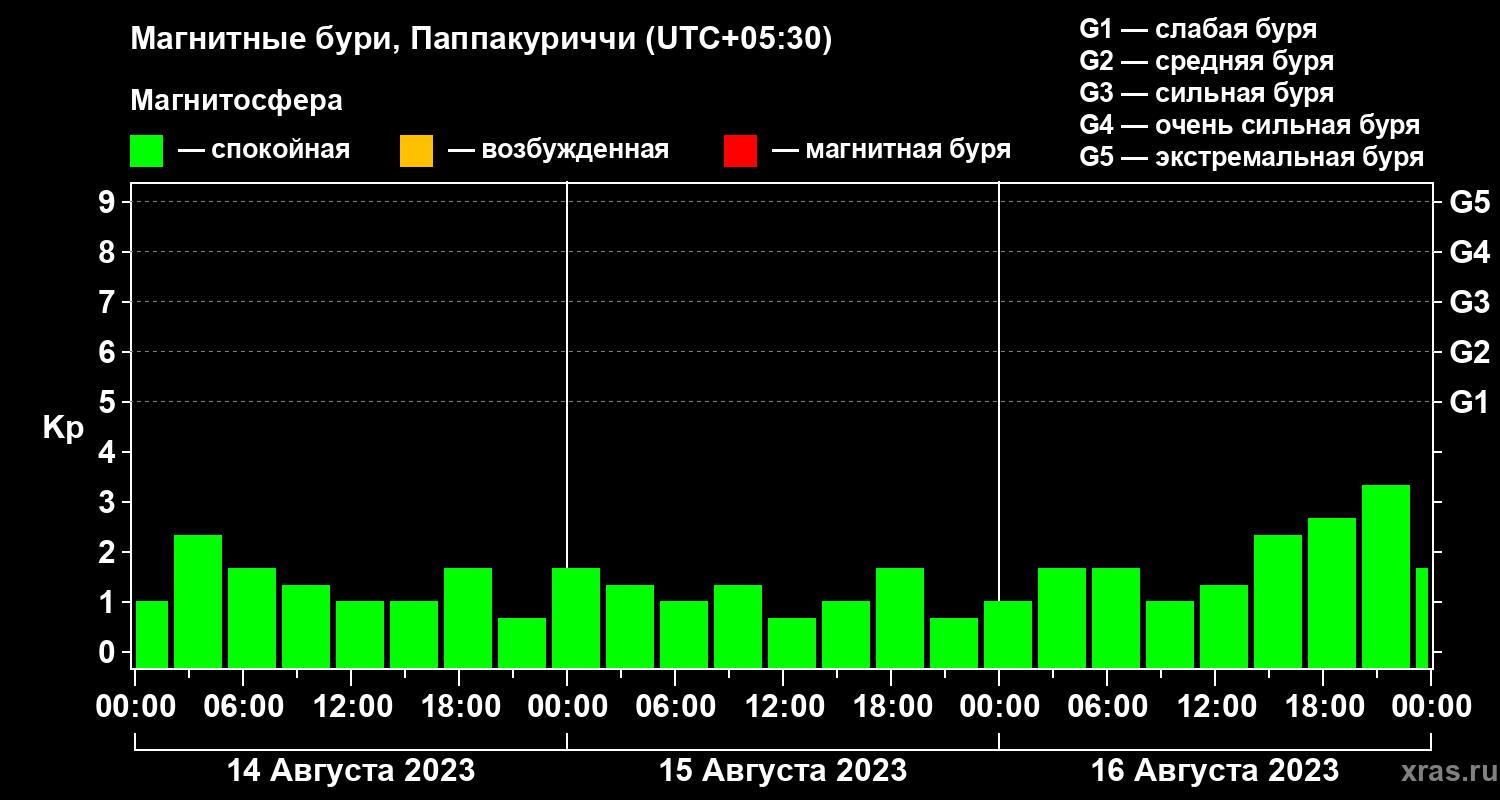 Магнитные бури Паппакуриччи 16 августа 2023 года