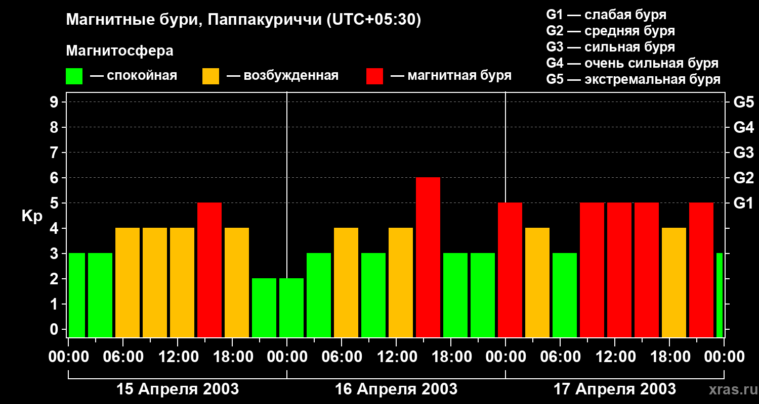 Магнитные бури Паппакуриччи 17 апреля 2003 года