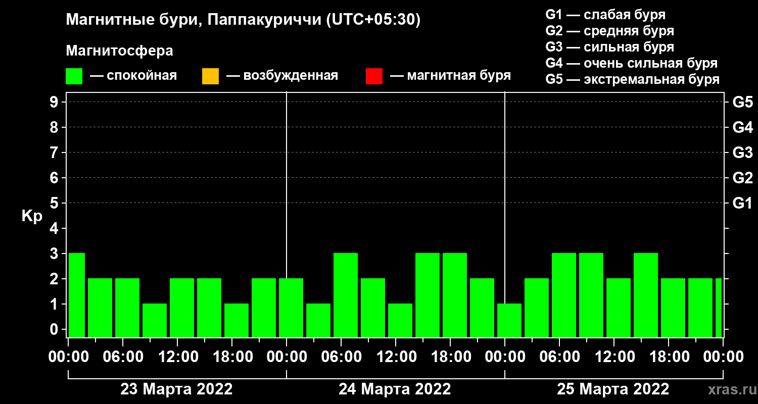 Магнитные бури Паппакуриччи 25 марта 2022 года