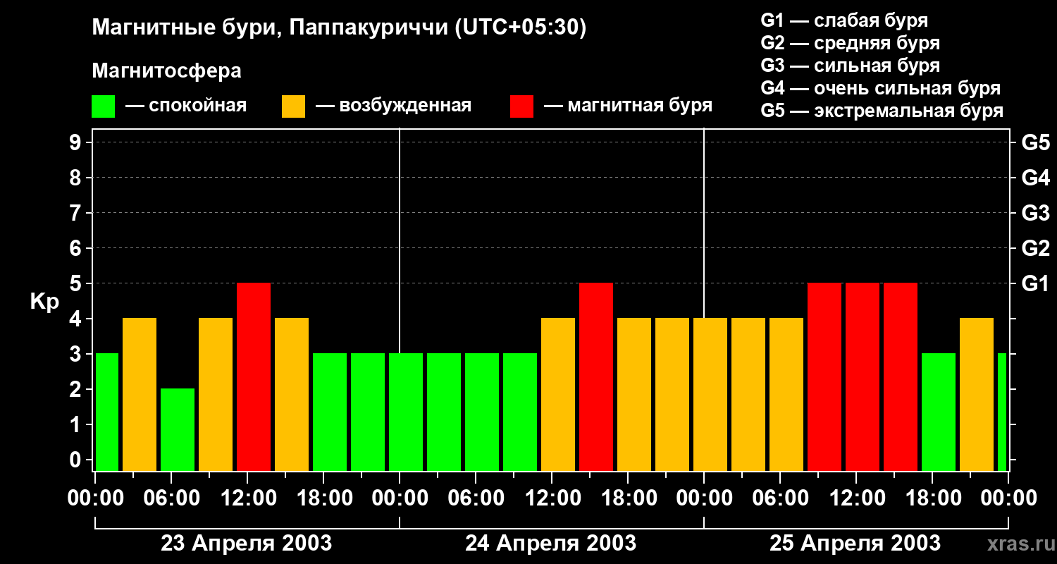 Магнитные бури Паппакуриччи 25 апреля 2003 года