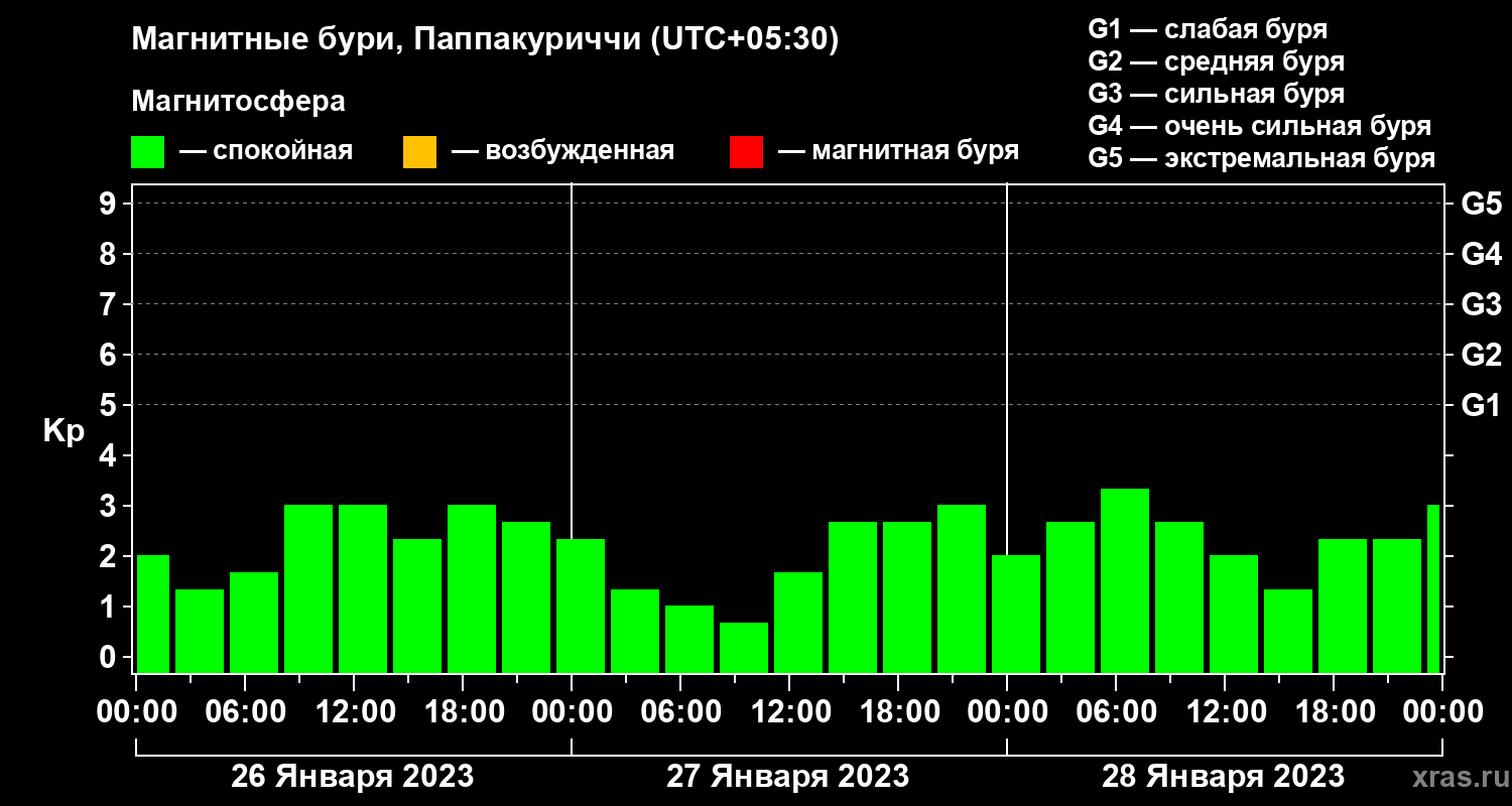 Магнитные бури Паппакуриччи 28 января 2023 года