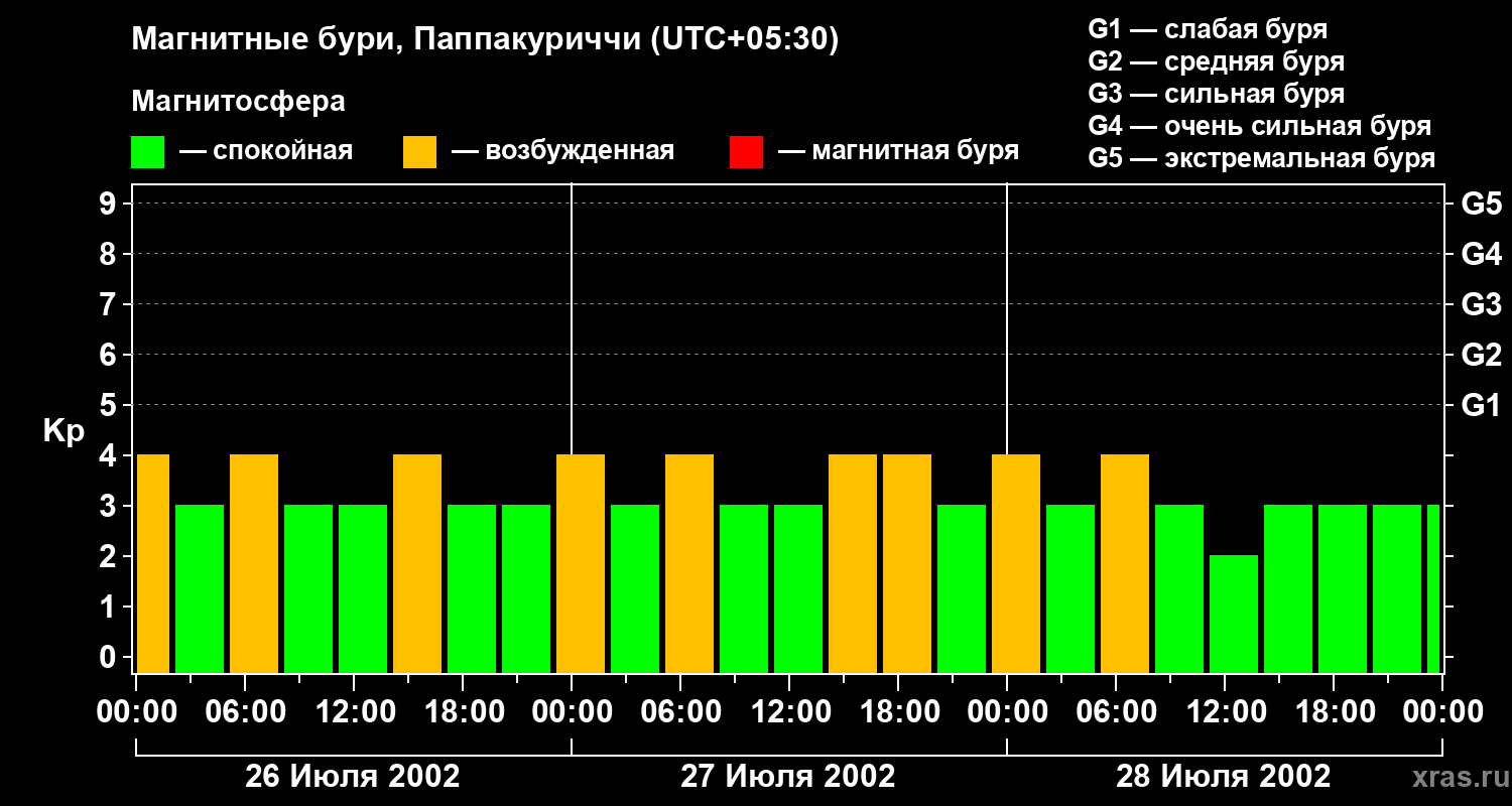 Магнитные бури Паппакуриччи 28 июля 2002 года