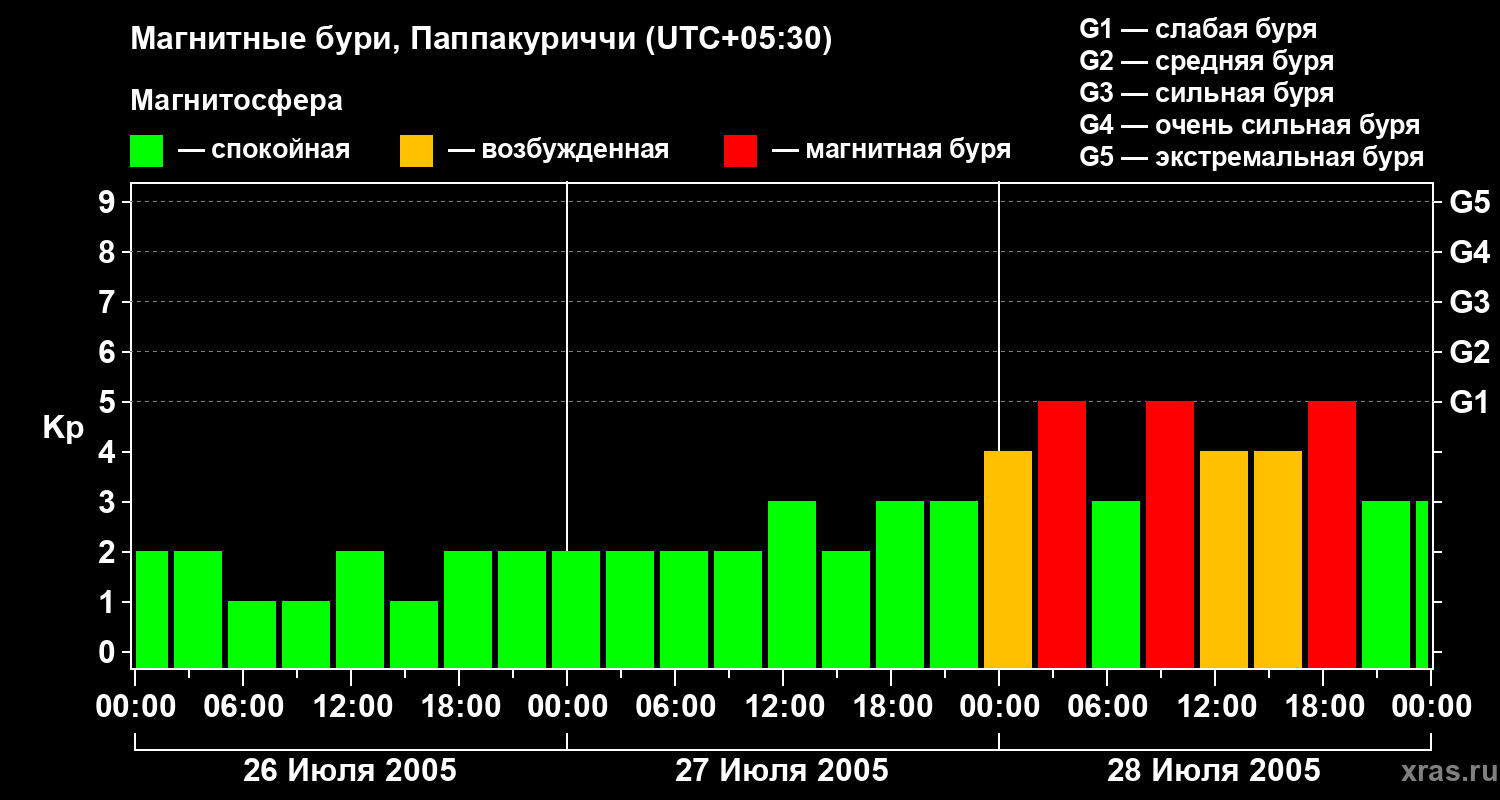 Магнитные бури Паппакуриччи 28 июля 2005 года