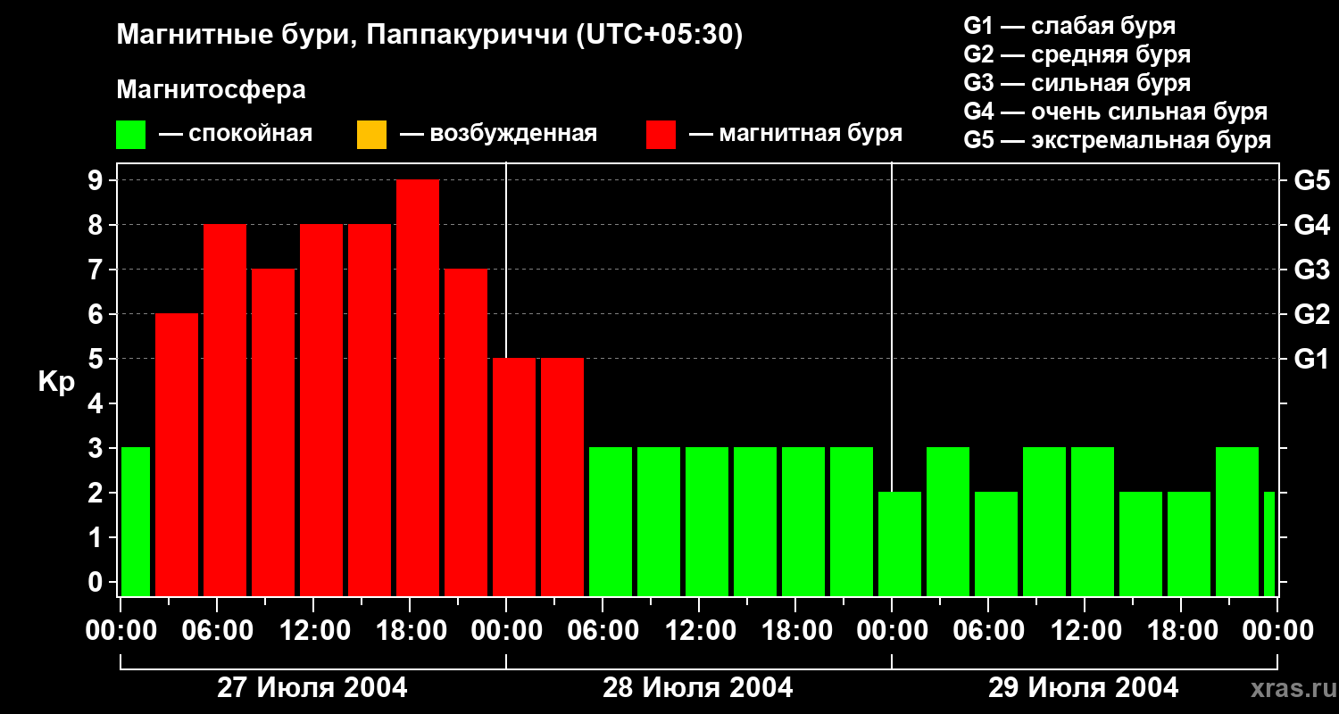 Магнитные бури Паппакуриччи 29 июля 2004 года