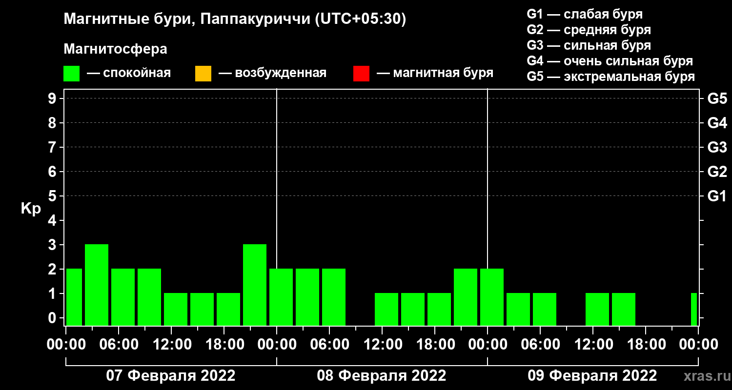 Магнитные бури Паппакуриччи 9 февраля 2022 года