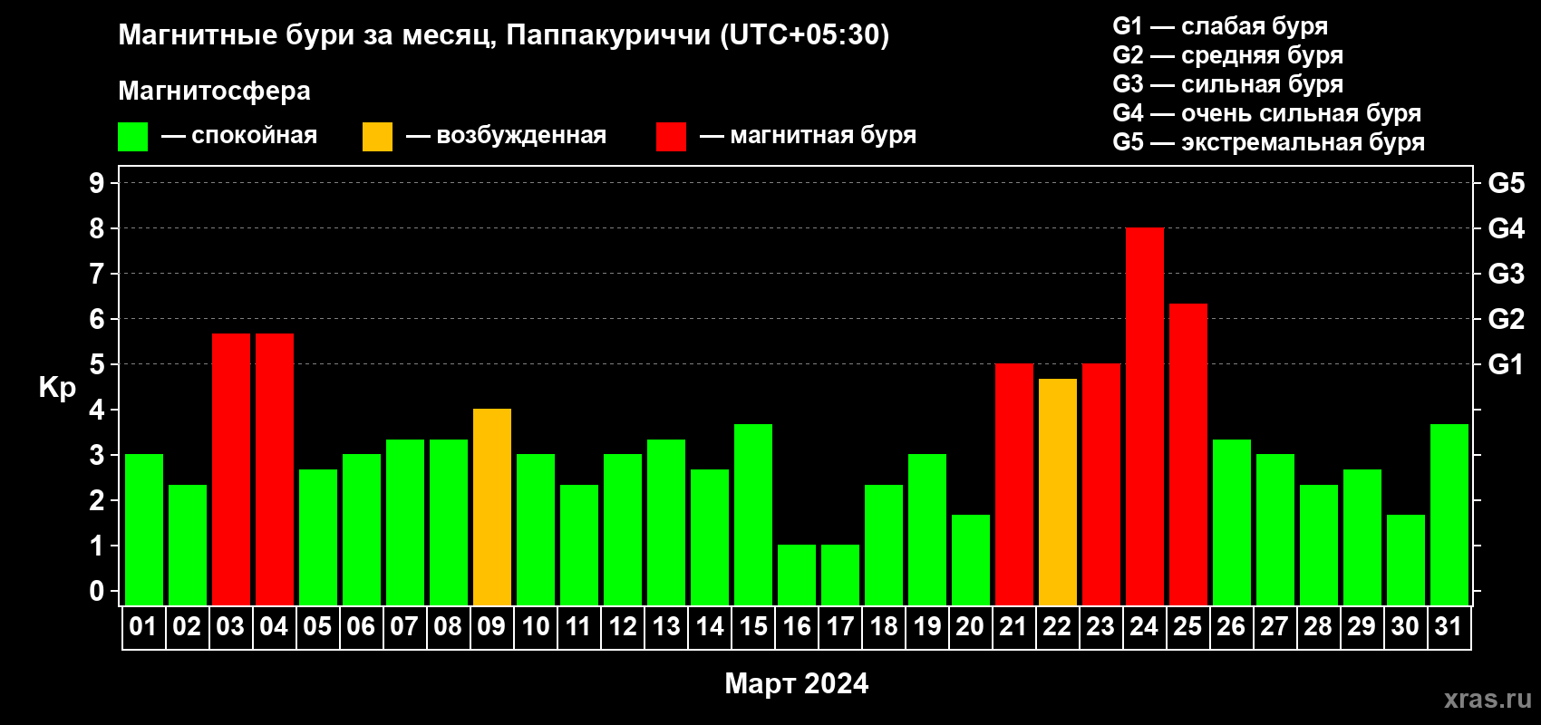 Список магнитных бурь в марте 2024 года
