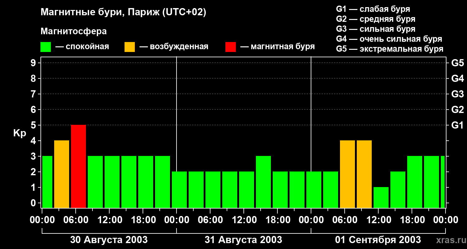 Магнитные бури в Париже 1 сентября 2003 года
