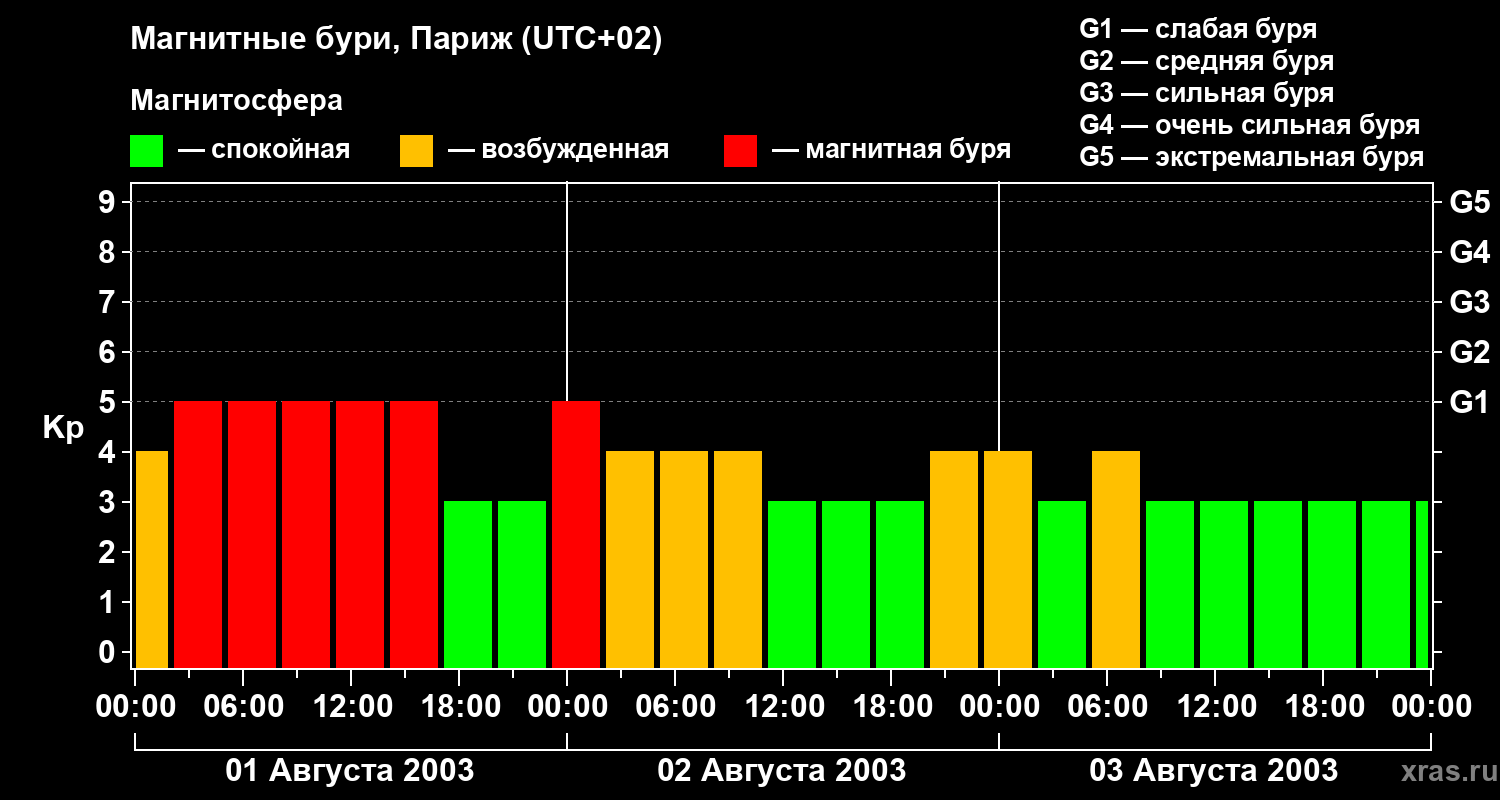 Магнитные бури в Париже — 3 августа 2003 года