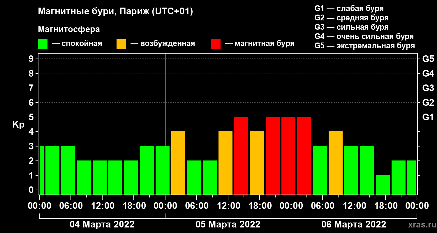 Магнитные бури в Париже 6 марта 2022 года