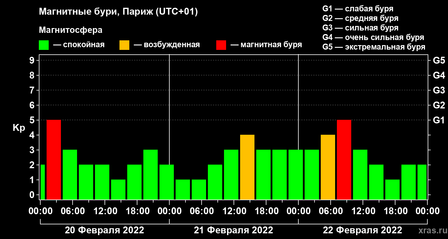Магнитные бури в Париже 22 февраля 2022 года