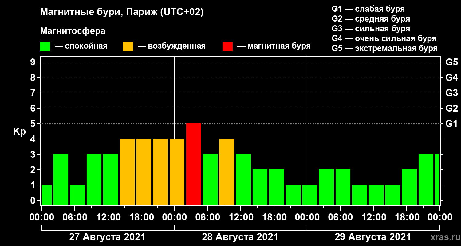 Магнитные бури в Париже 29 августа 2021 года