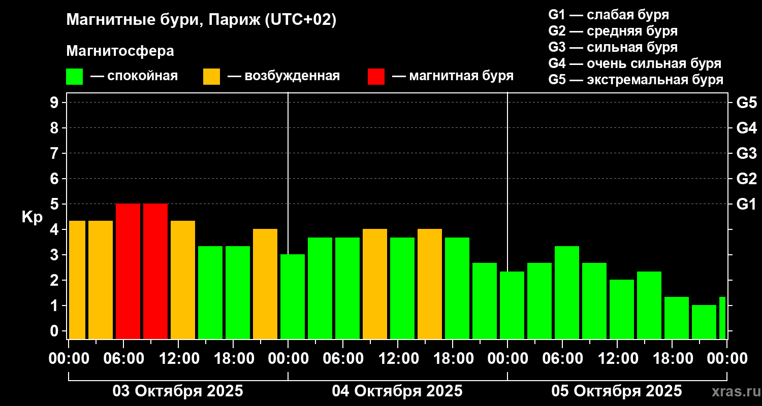 Магнитные бури в Париже 5 октября 2025 года