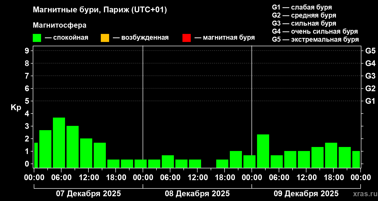 Магнитные бури в Париже 9 декабря 2025 года
