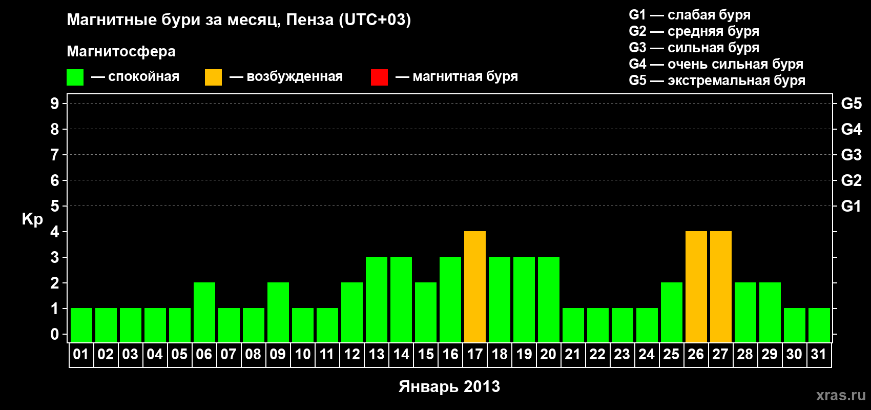 Магнитные бури в Пензе в январе 2013 года