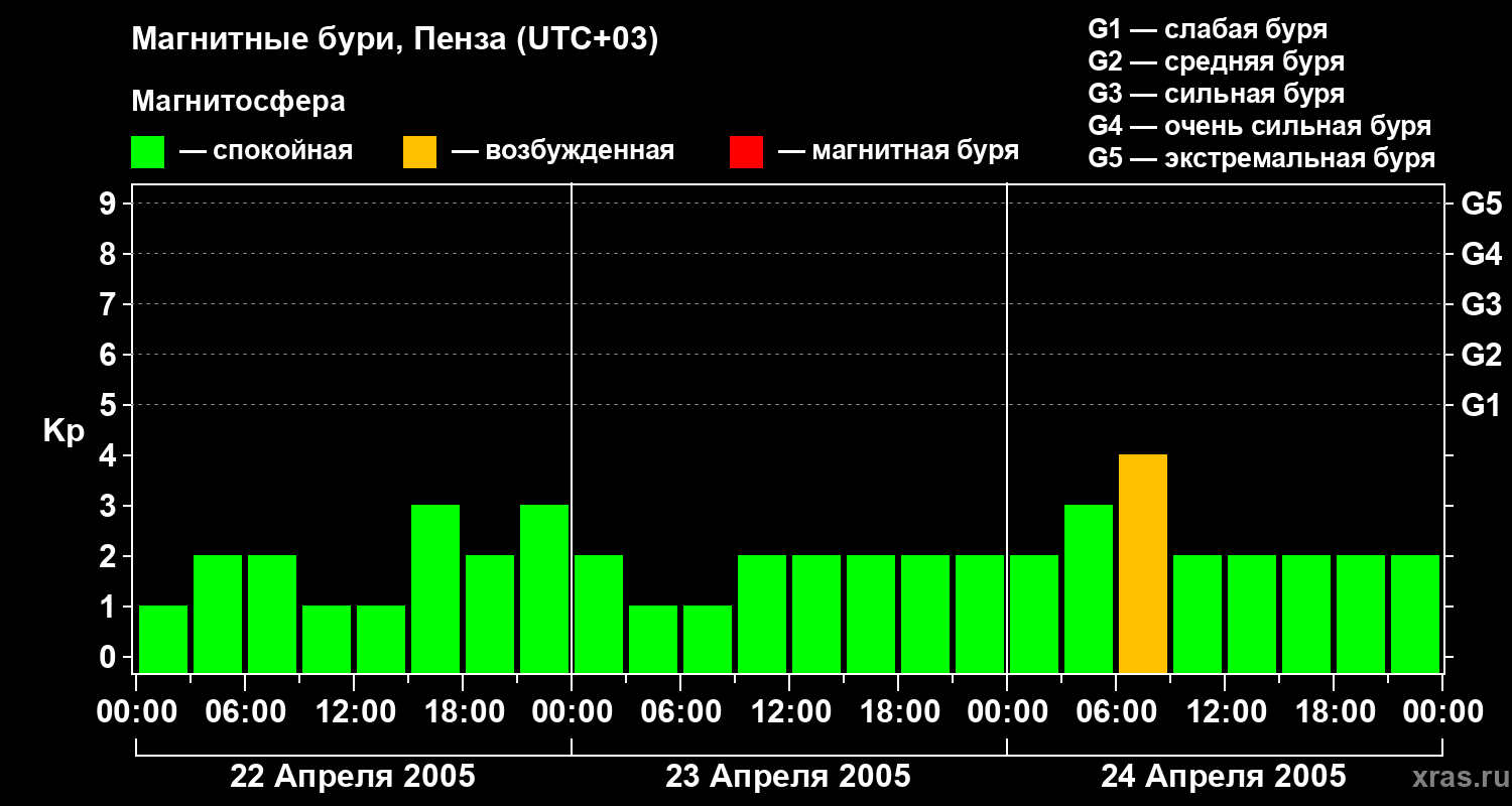 Магнитные бури в Пензе — 24 апреля 2005 года