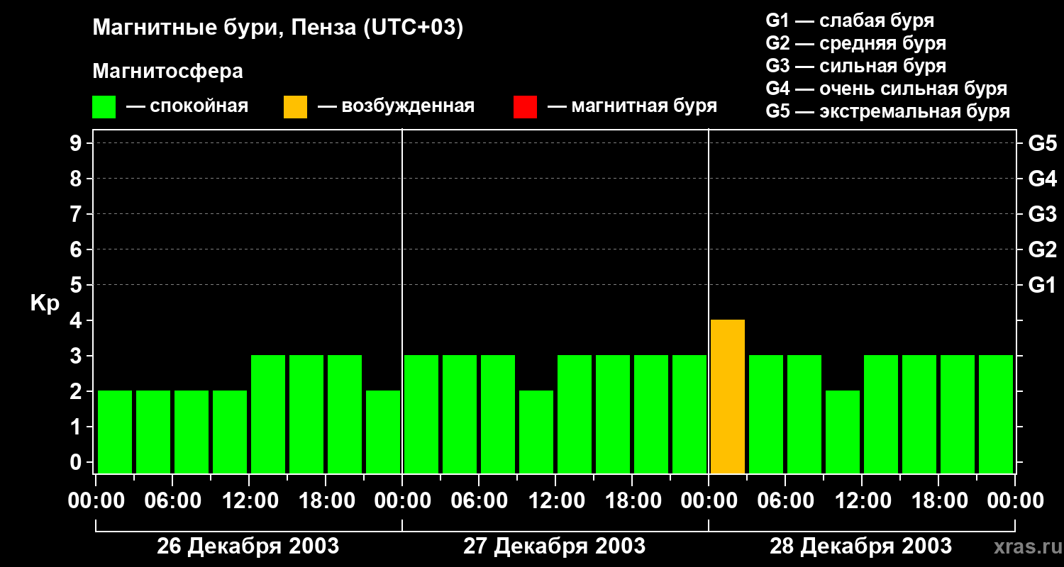 Магнитные бури в Пензе — 28 декабря 2003 года