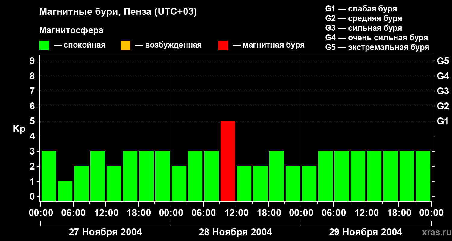 Магнитные бури в Пензе — 29 ноября 2004 года
