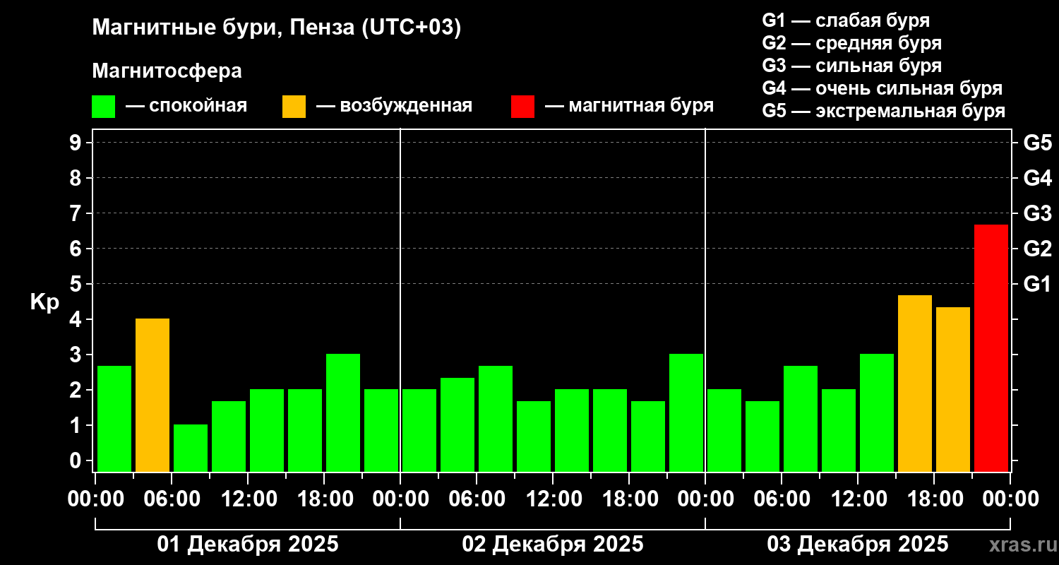 Магнитные бури в Пензе — 3 декабря 2025 года