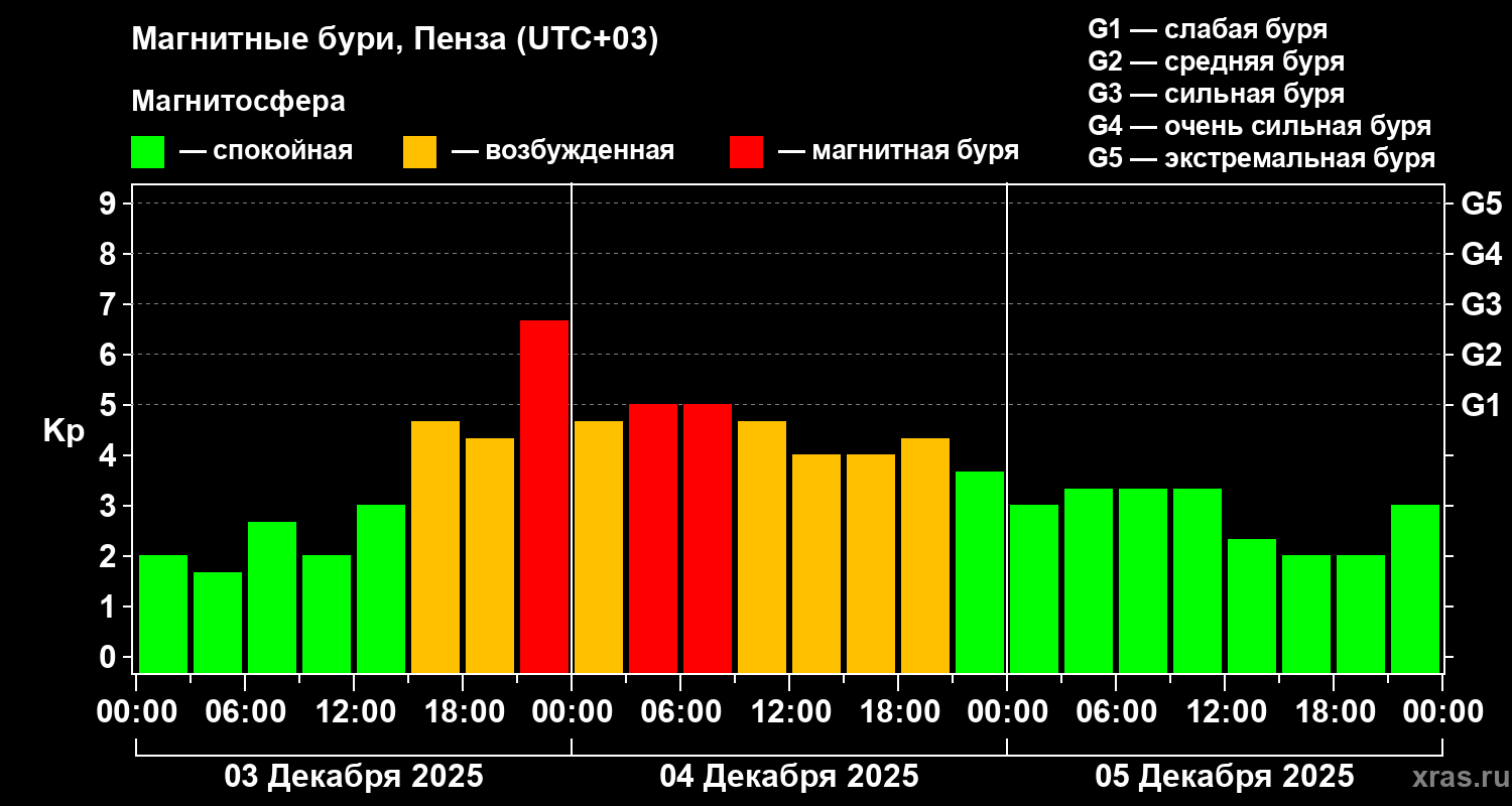 Магнитные бури в Пензе в декабре 2025 года