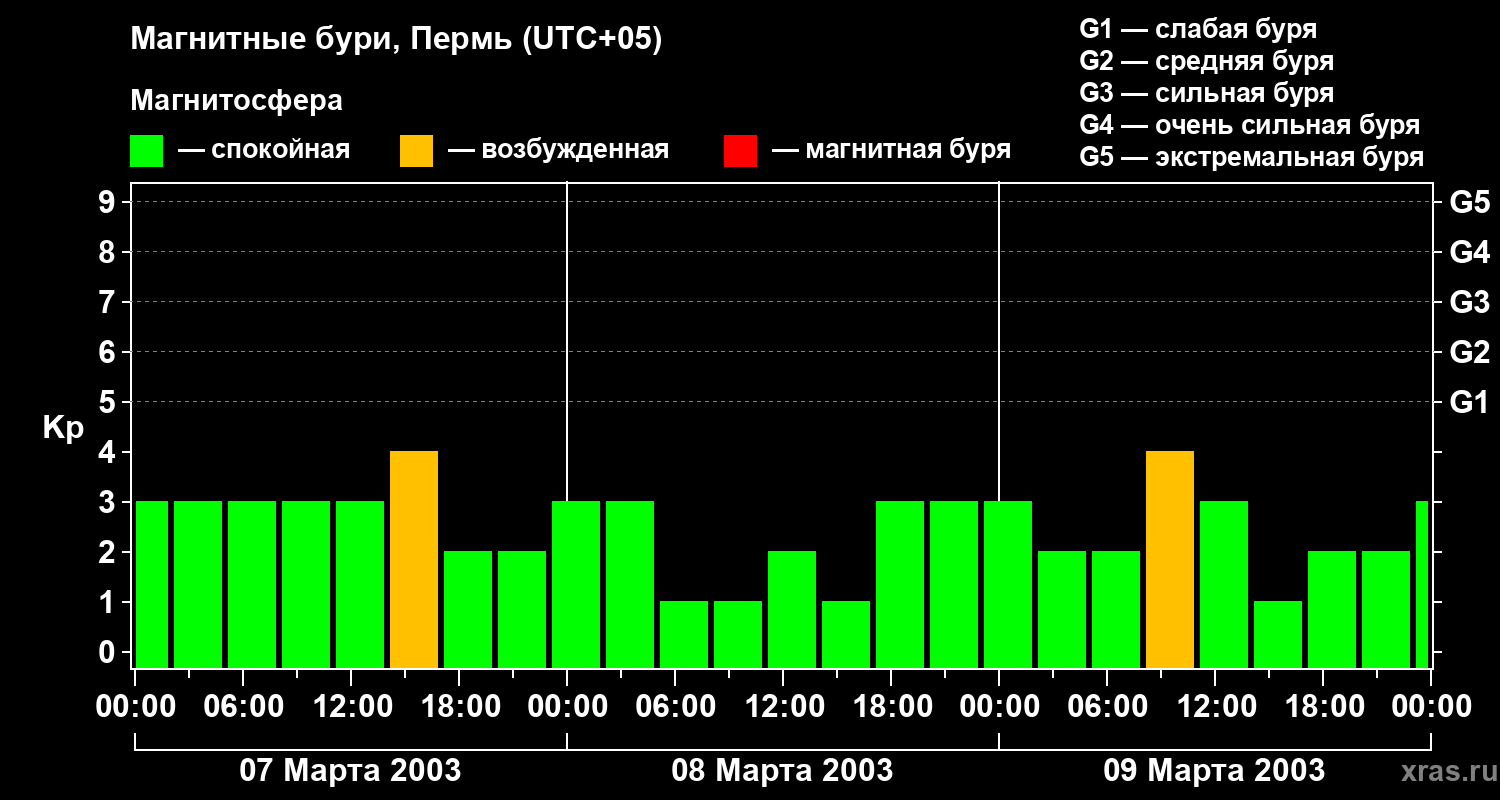 Магнитные бури Перми 9 марта 2003 года