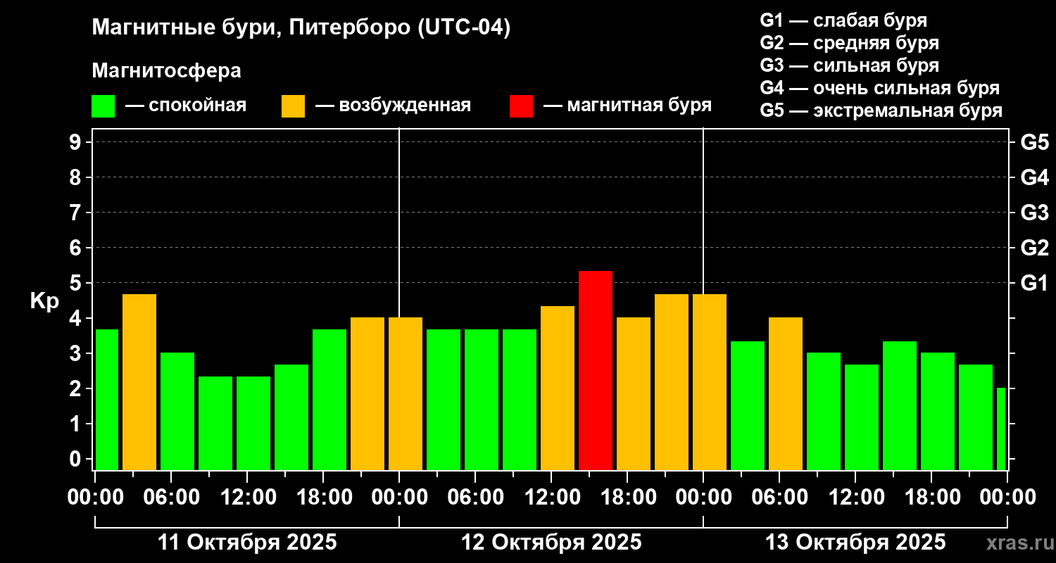 Магнитные бури Питерборо 13 октября 2025 года