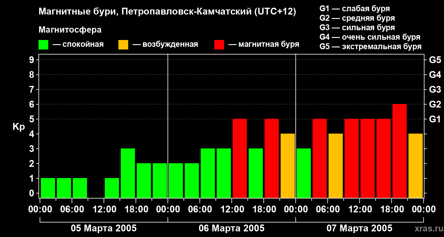 Магнитные бури Петропавловске-Камчатском — 7 марта 2005 года