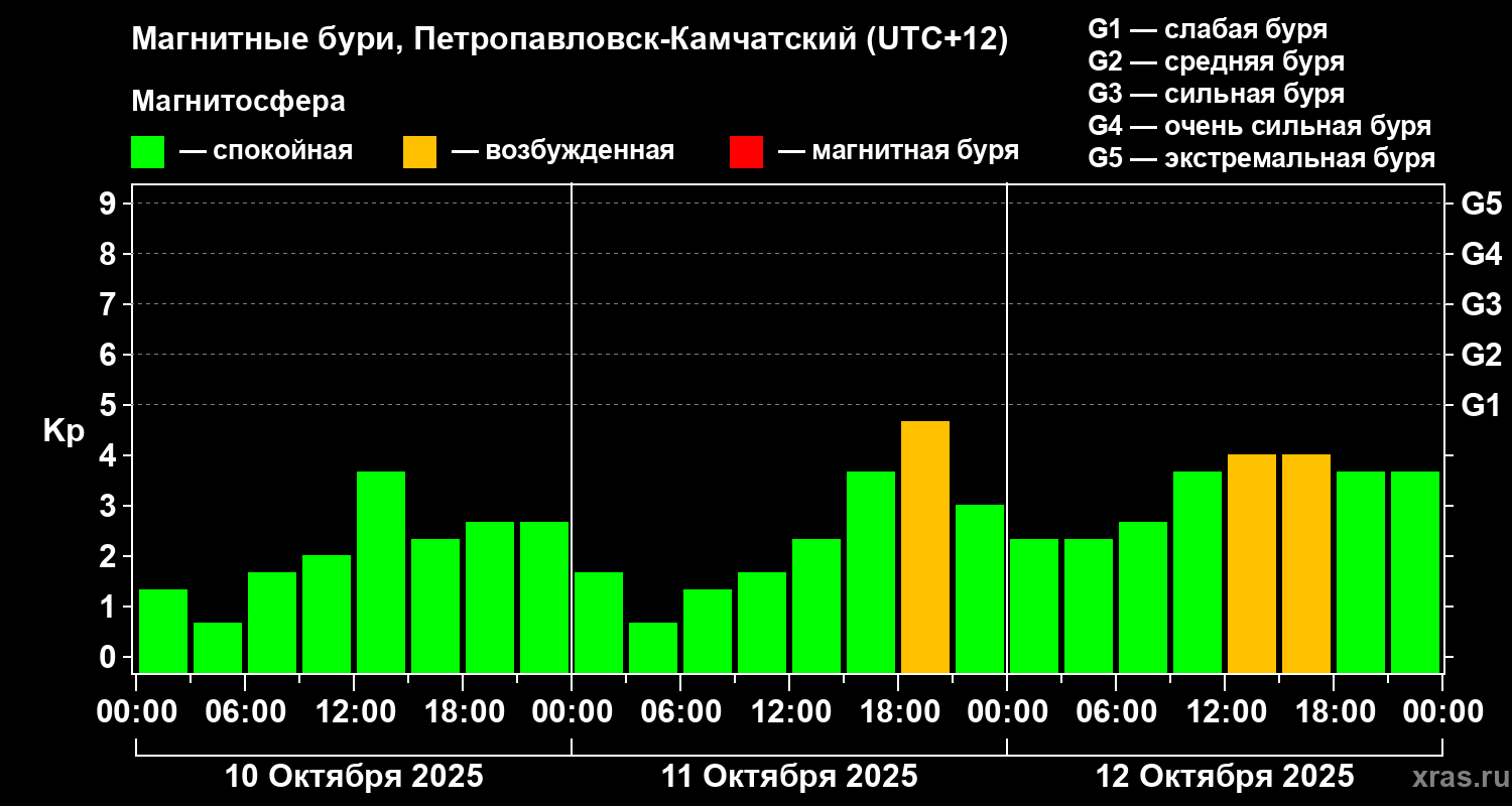 Магнитные бури Петропавловске-Камчатском — 12 октября 2025 года