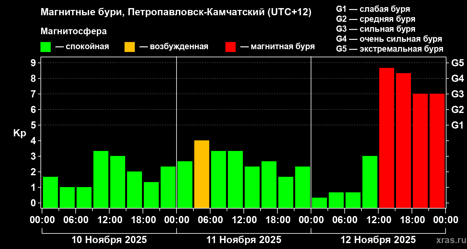 Магнитные бури Петропавловске-Камчатском — 12 ноября 2025 года