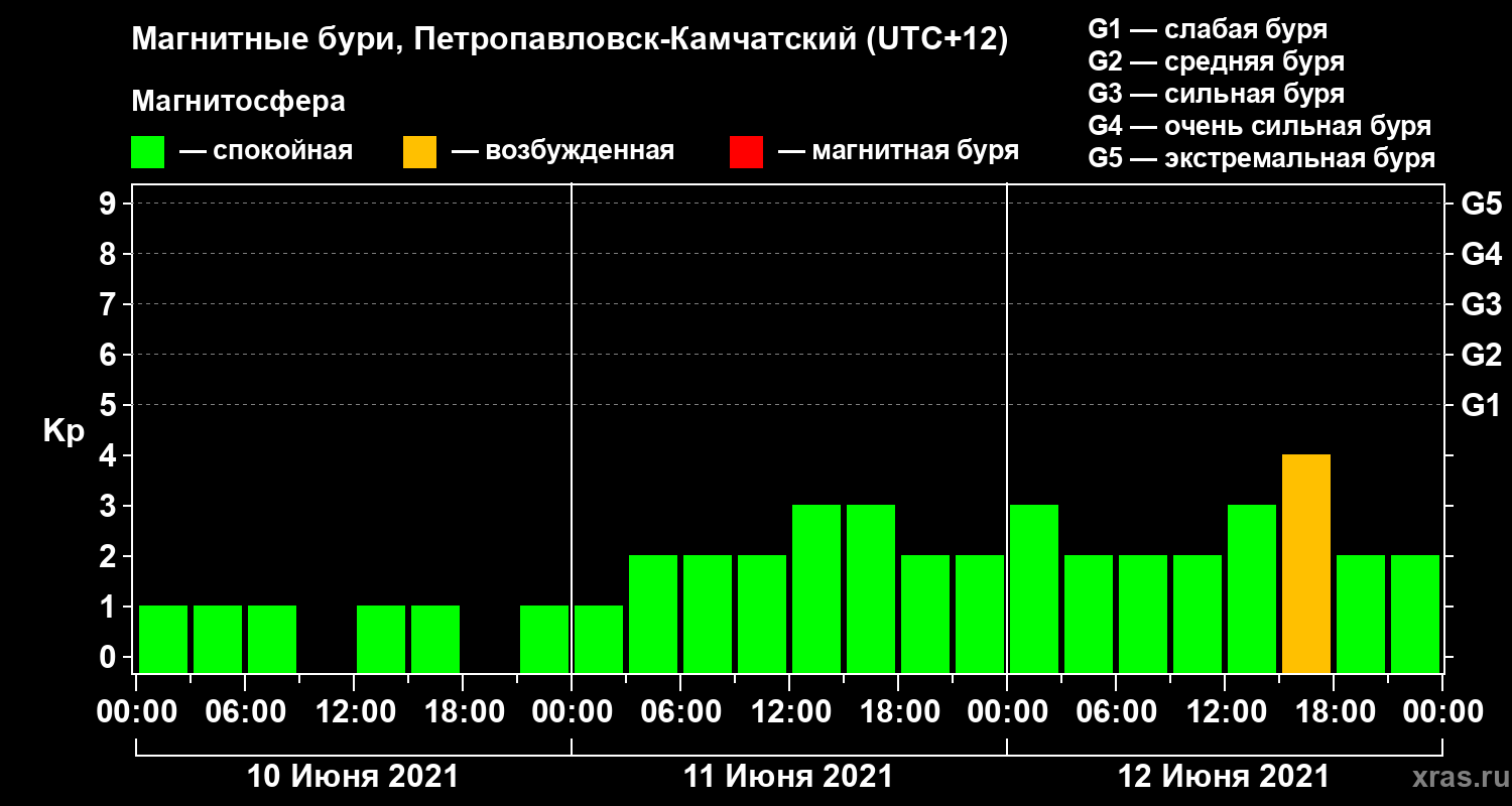 Магнитные бури Петропавловске-Камчатском — 12 июня 2021 года