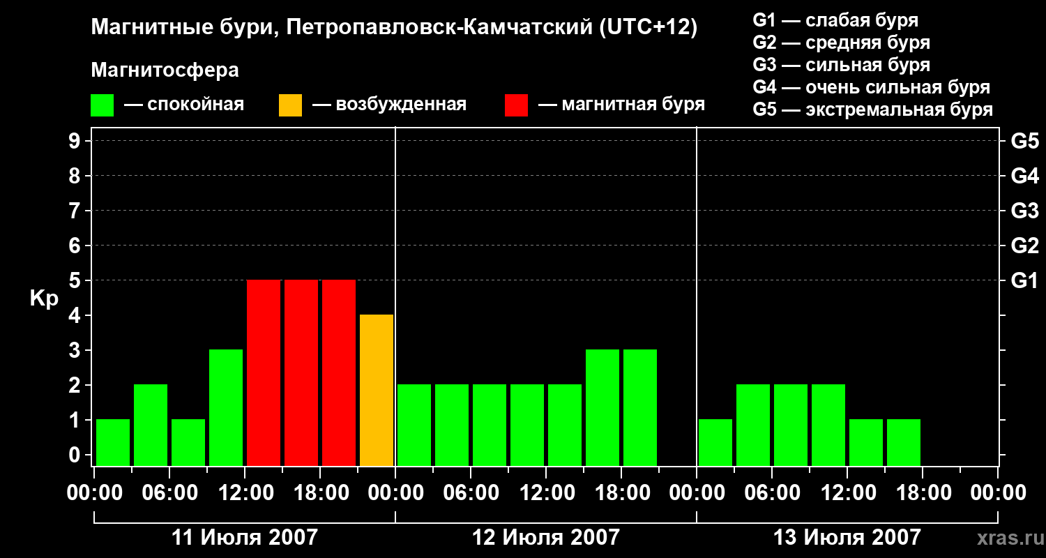 Магнитные бури Петропавловске-Камчатском — 13 июля 2007 года