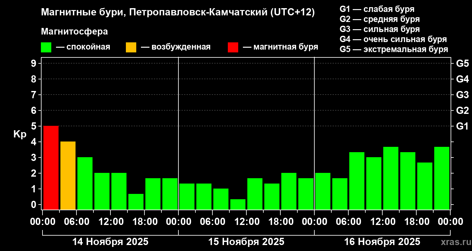 Магнитные бури Петропавловске-Камчатском — 16 ноября 2025 года