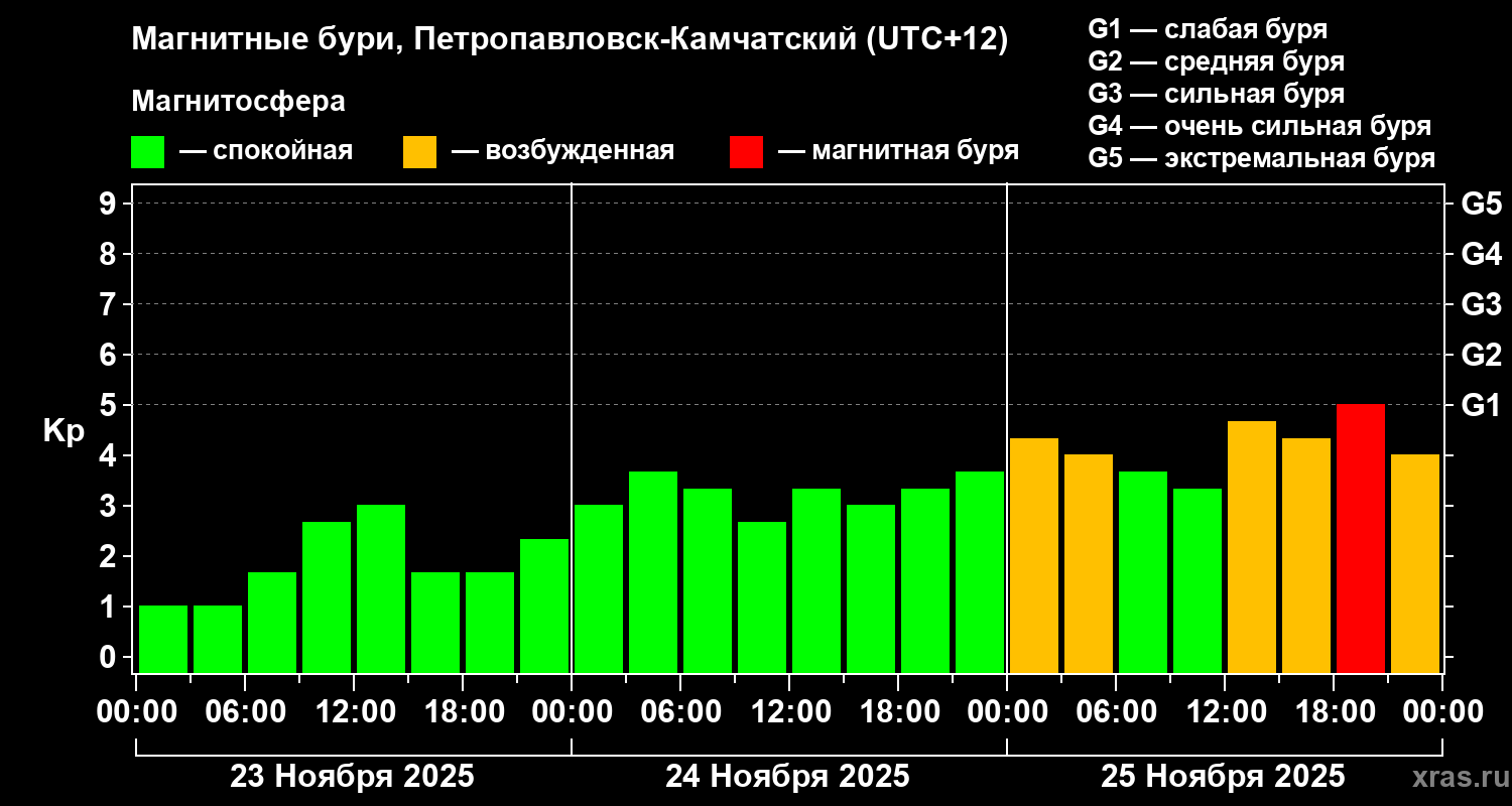 Магнитные бури Петропавловске-Камчатском — 25 ноября 2025 года