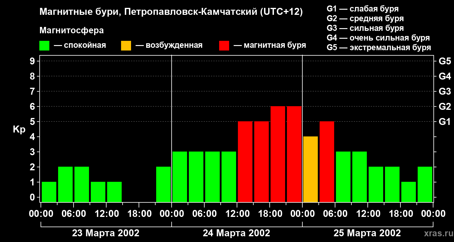 Магнитные бури Петропавловске-Камчатском — 25 марта 2002 года