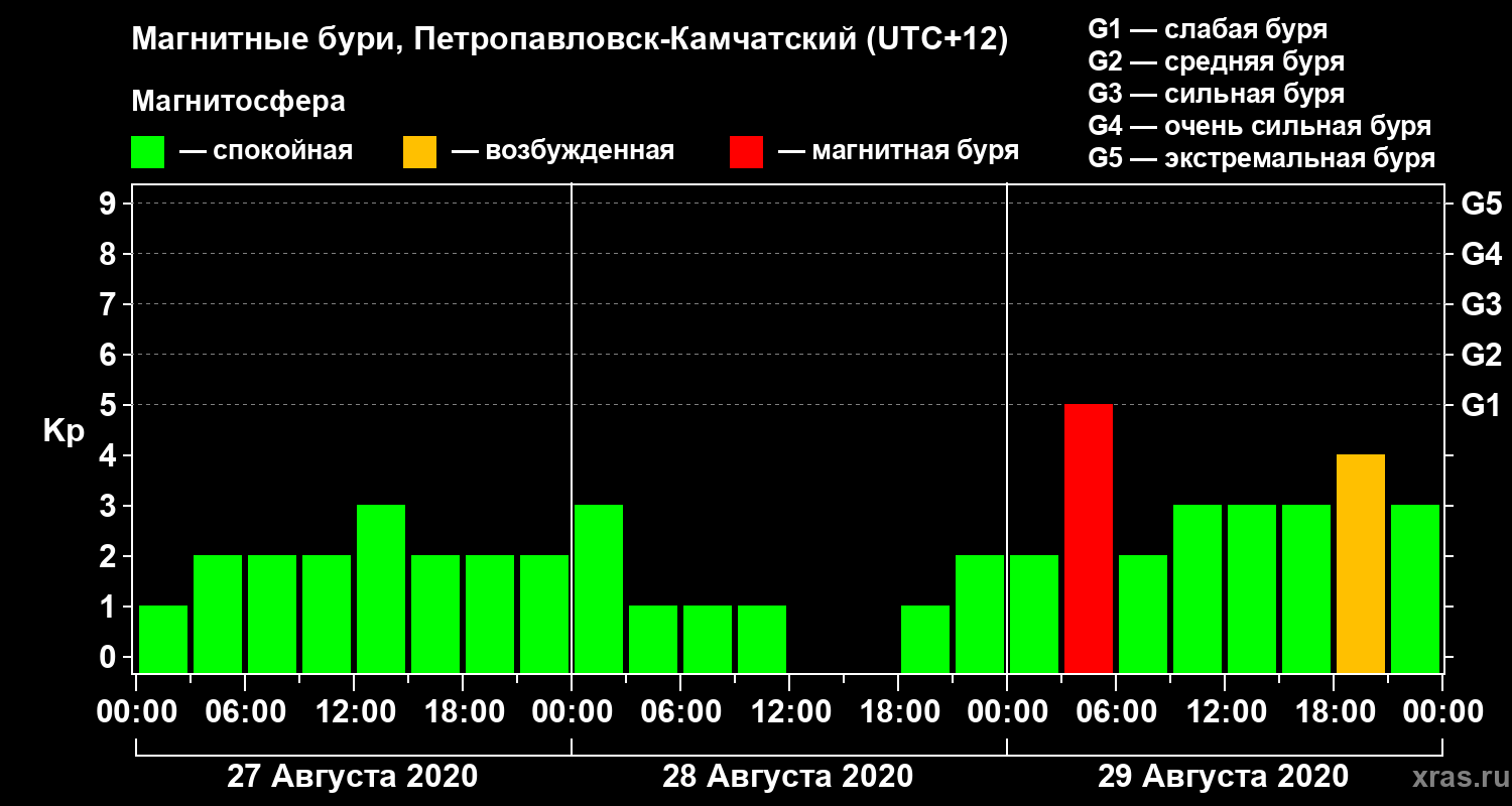 Магнитные бури Петропавловске-Камчатском — 29 августа 2020 года