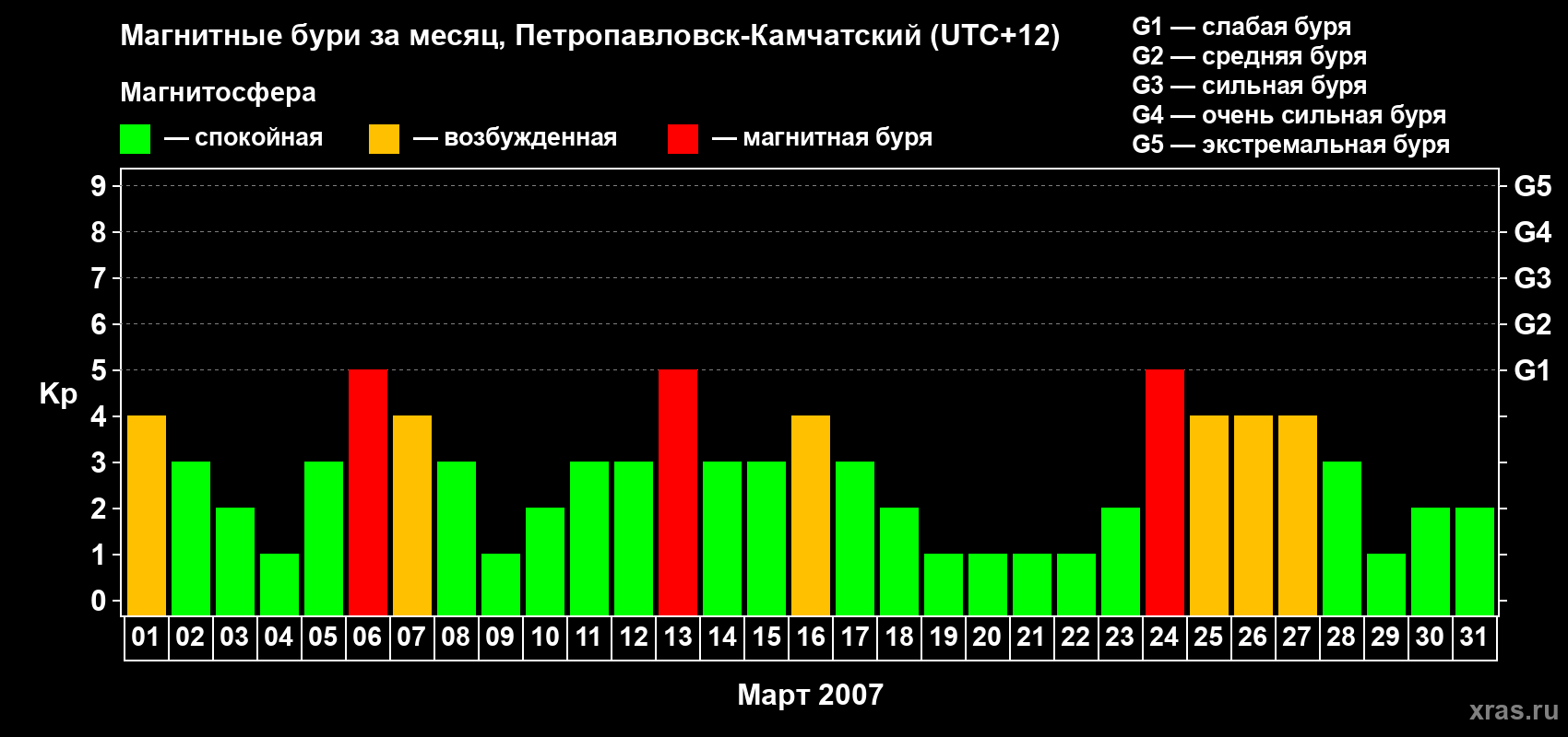 Магнитные бури Петропавловске-Камчатском — 31 марта 2007 года