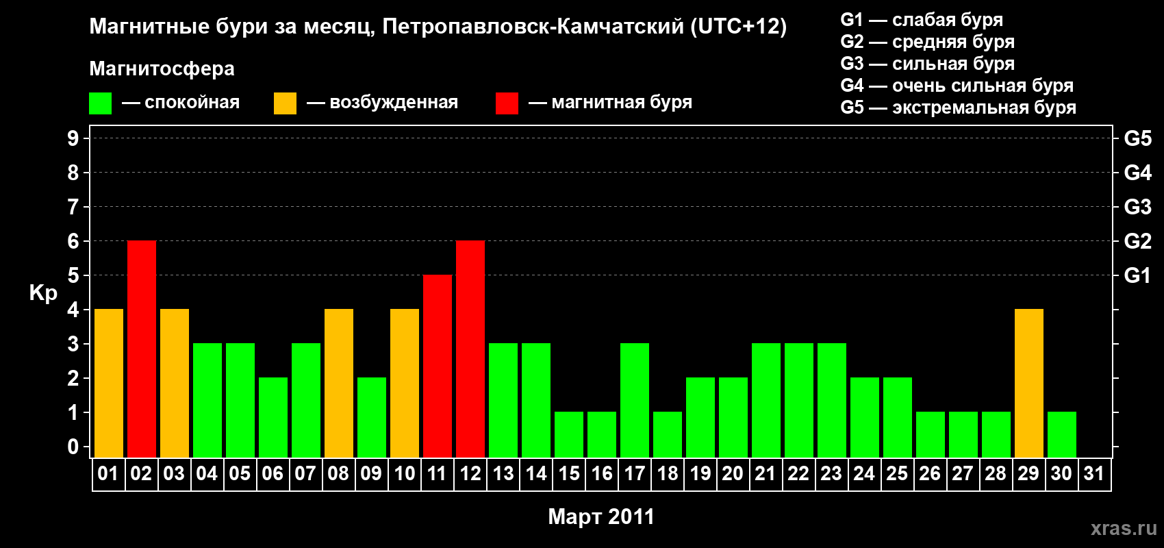 Магнитные бури Петропавловске-Камчатском — 31 марта 2011 года
