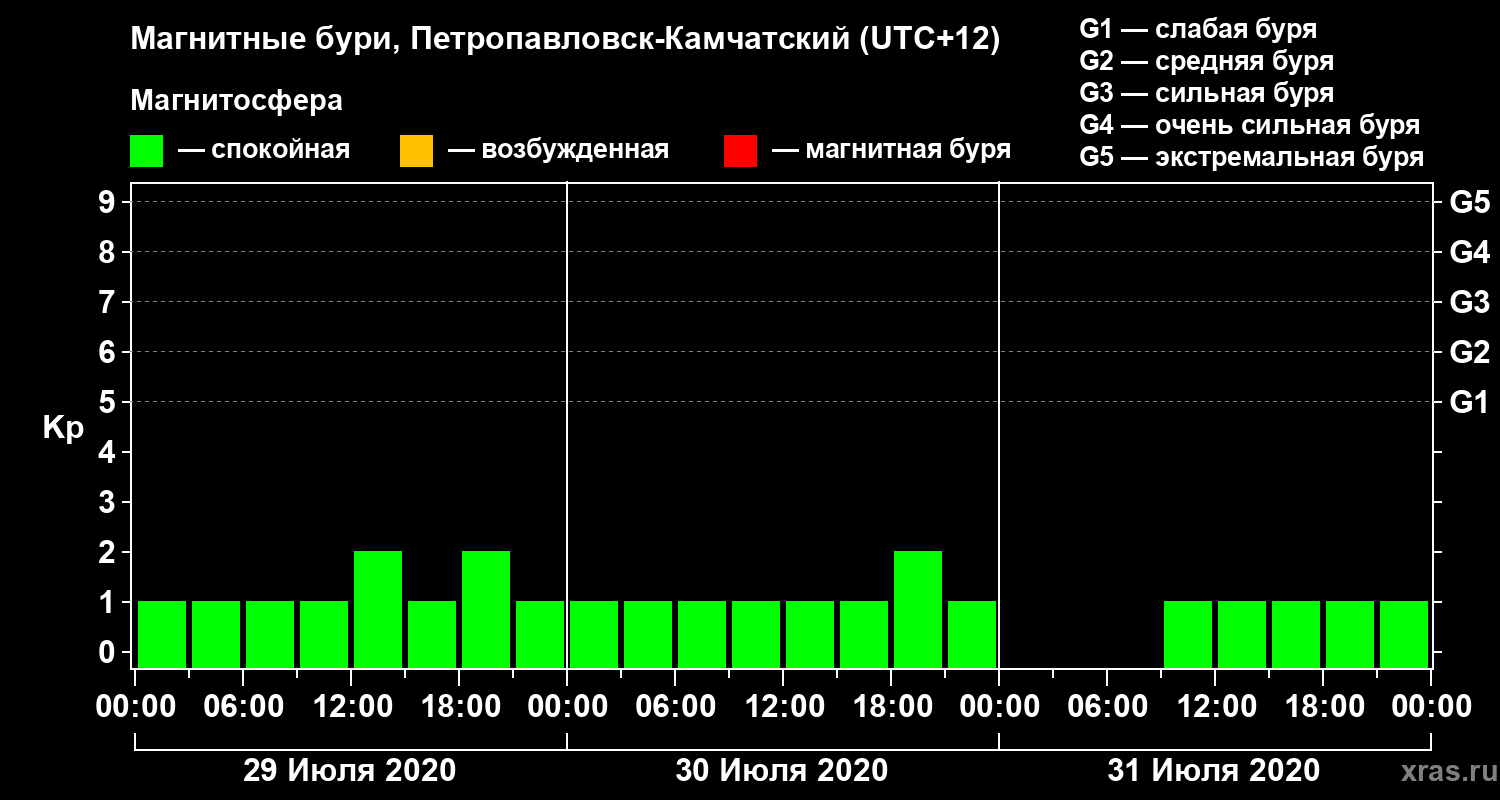 Магнитные бури Петропавловске-Камчатском — 31 июля 2020 года