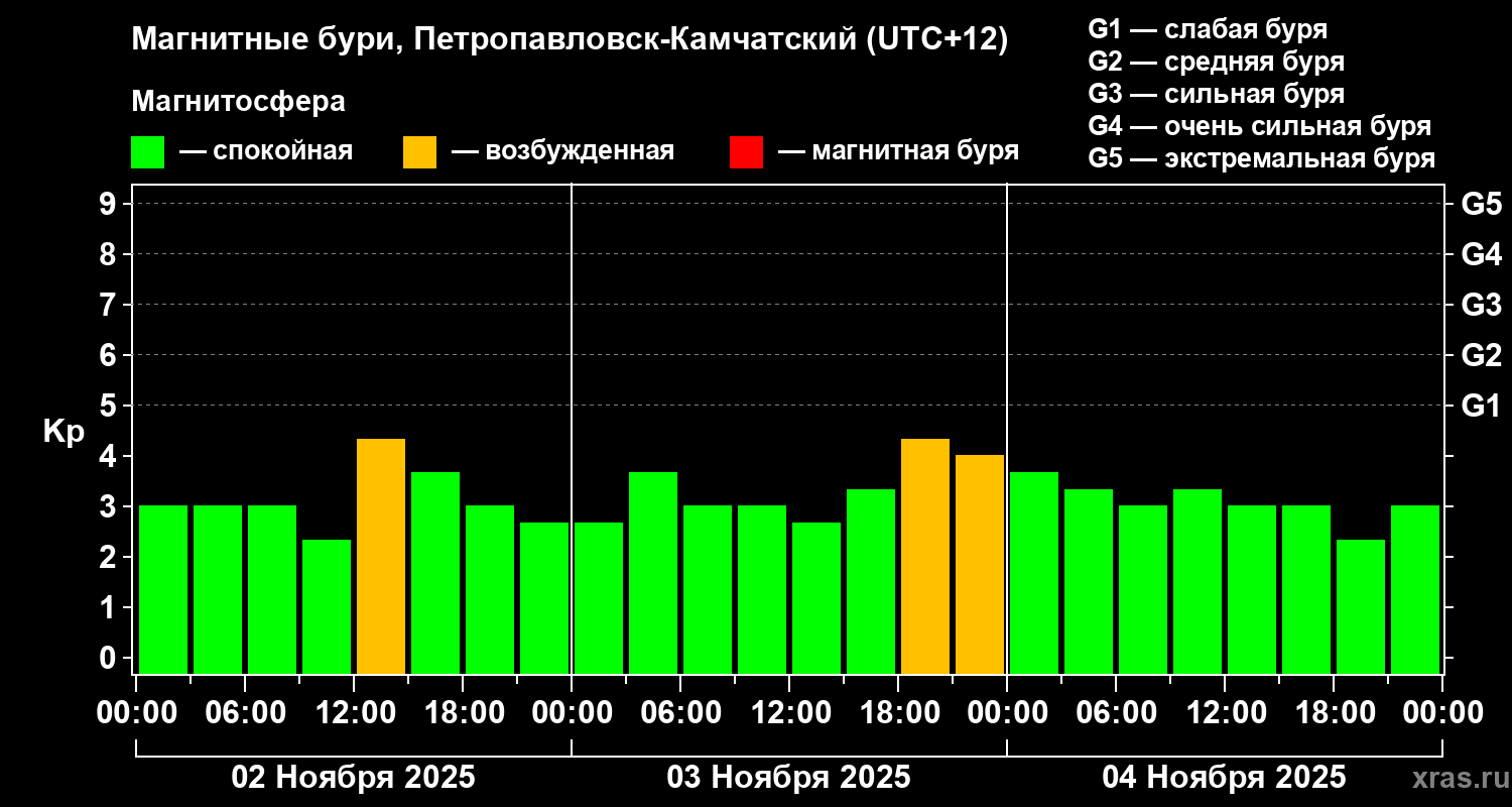 Магнитные бури Петропавловске-Камчатском — 4 ноября 2025 года