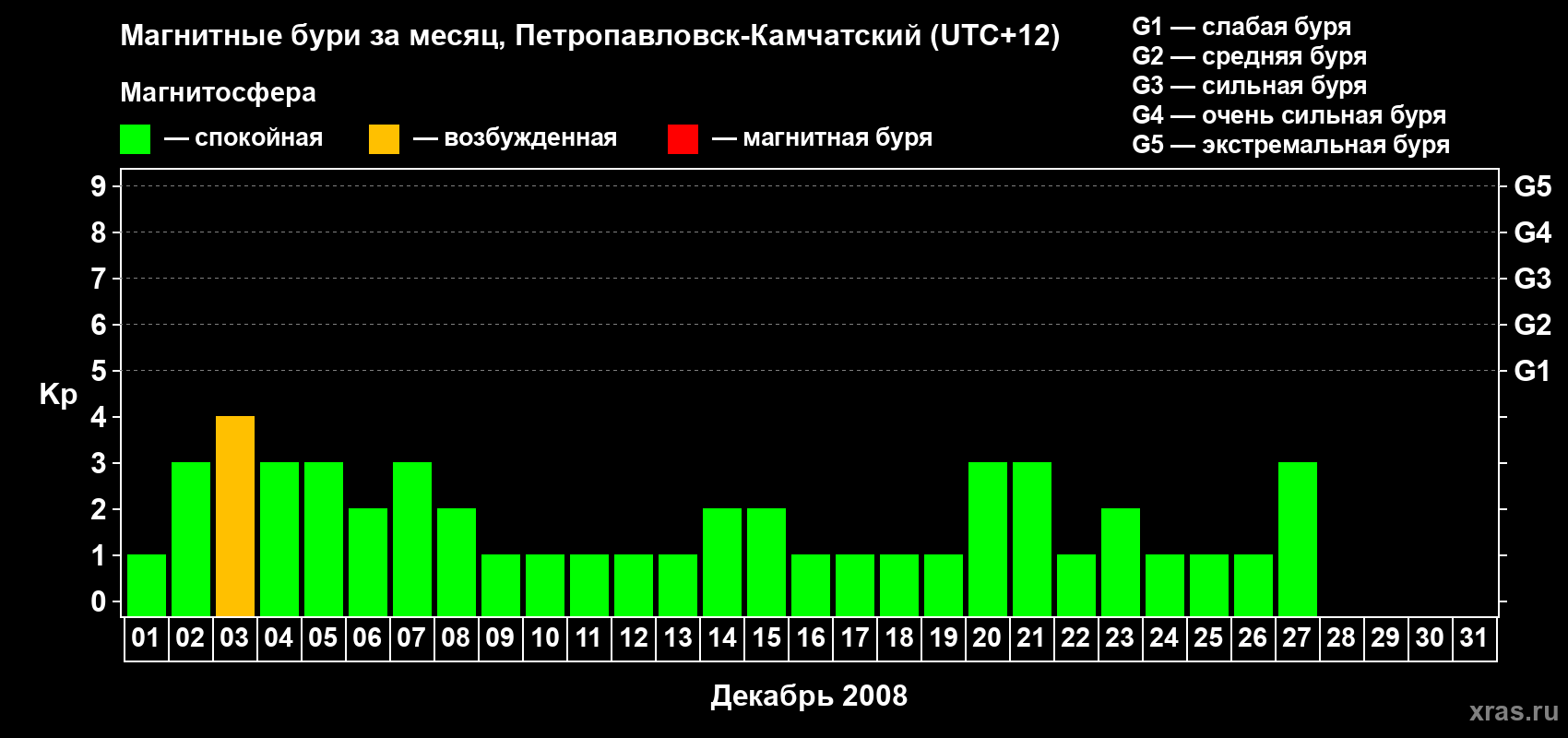 Список магнитных бурь в декабре 2008 года