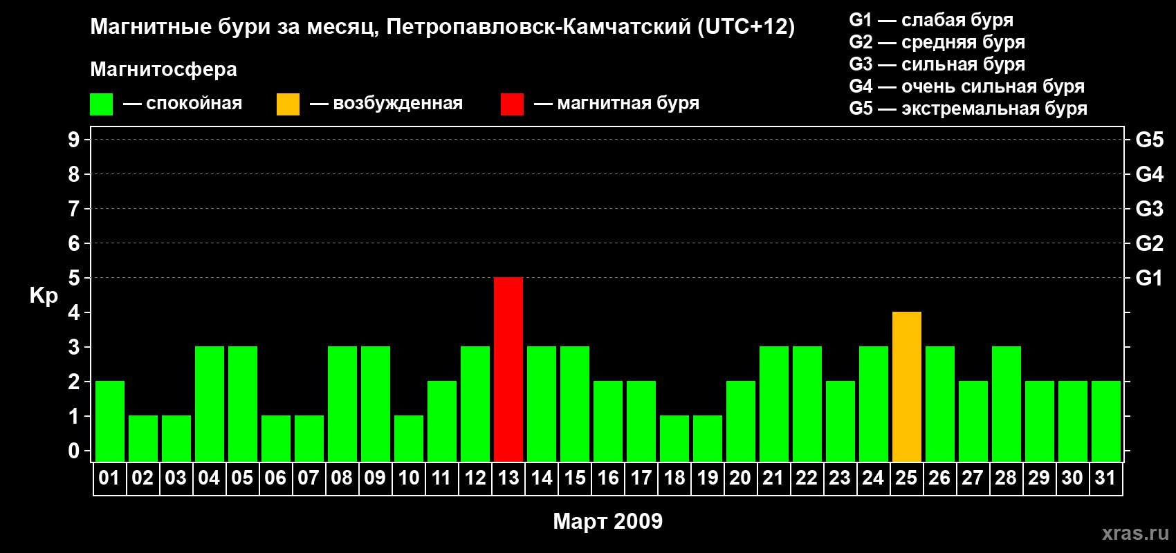 13 марта 2009 года — Магнитная буря уровня G1
