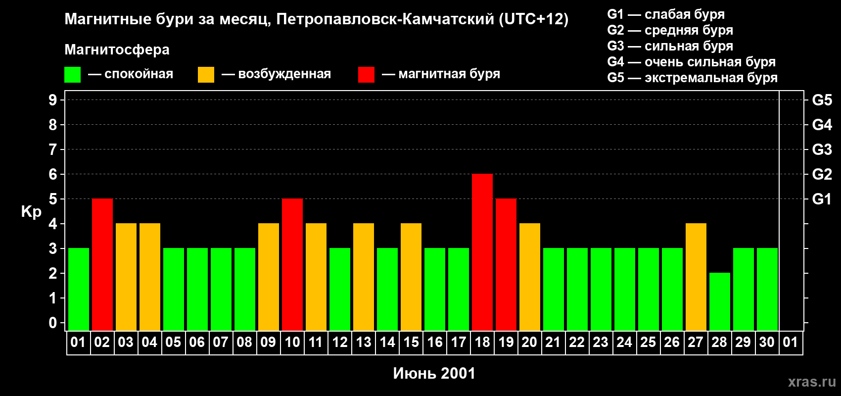 Список магнитных бурь в июне 2001 года