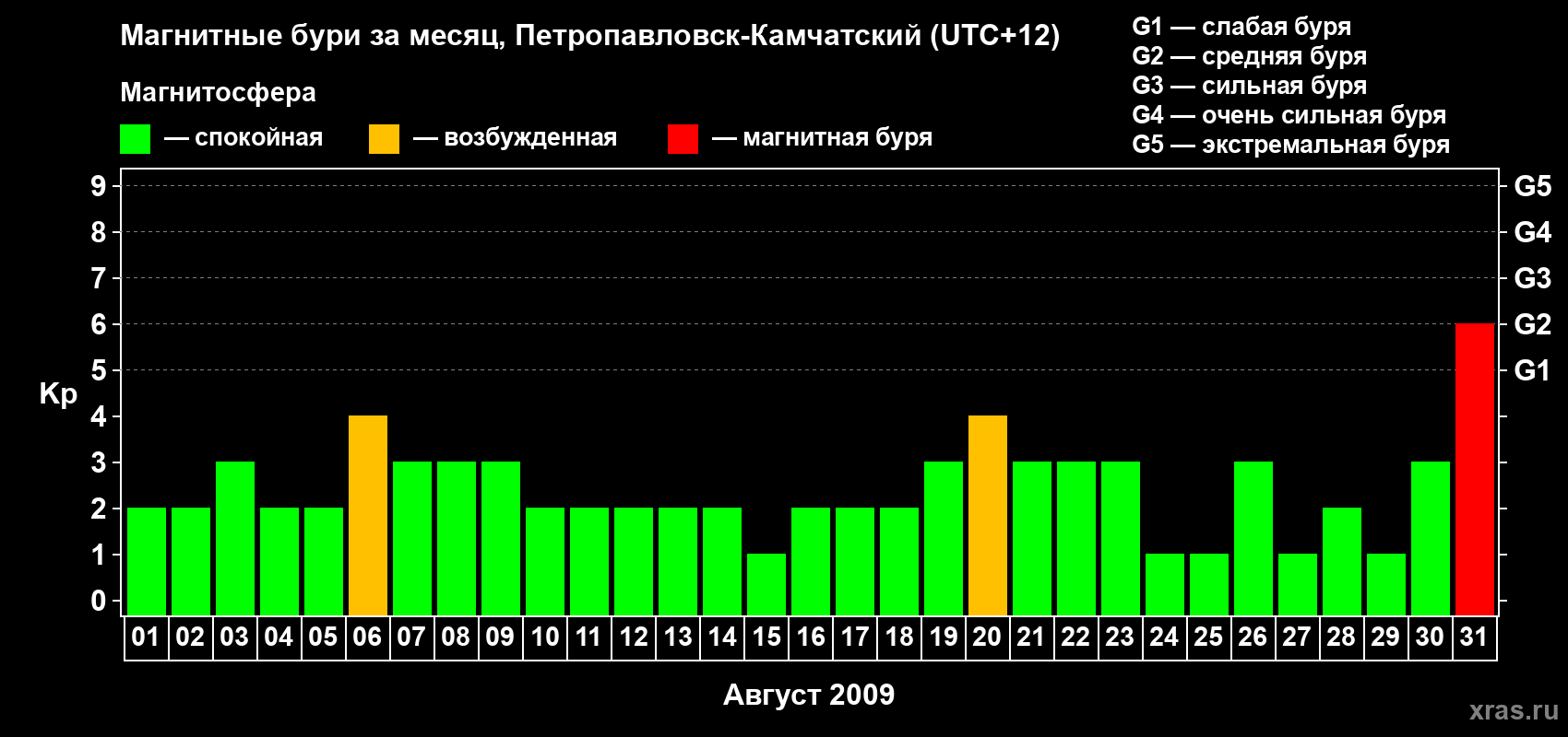 31 августа 2009 года — Магнитная буря уровня G2