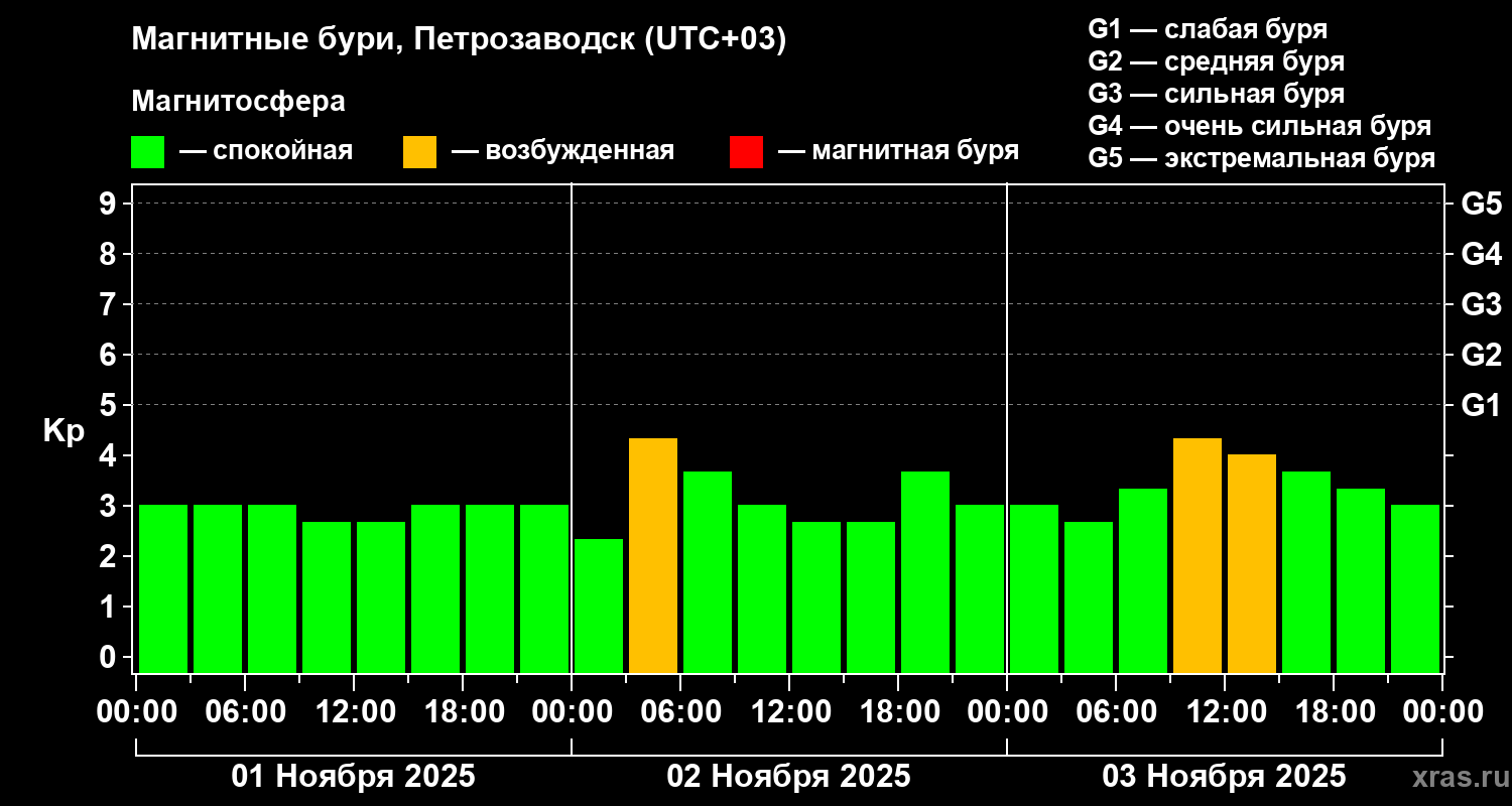 Магнитные бури в Петрозаводске — 3 ноября 2025 года