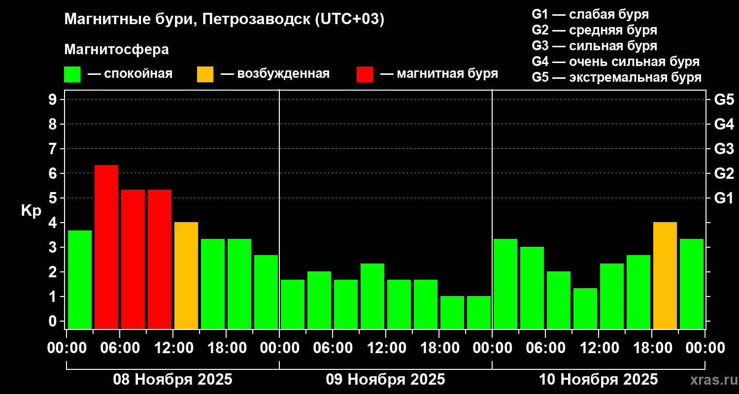 Магнитные бури в Петрозаводске — 10 ноября 2025 года