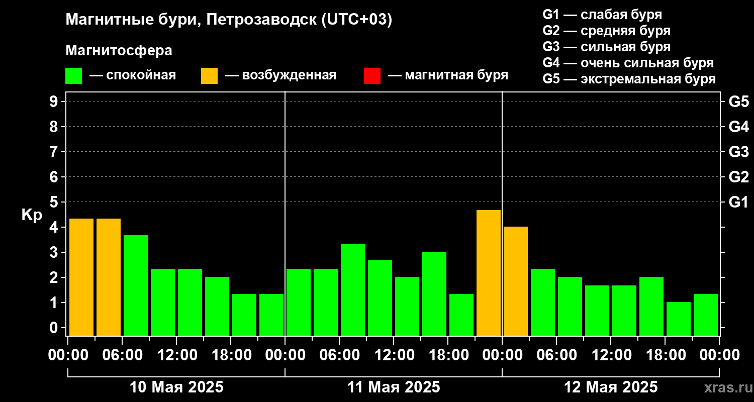 Магнитные бури в Петрозаводске — 12 мая 2025 года