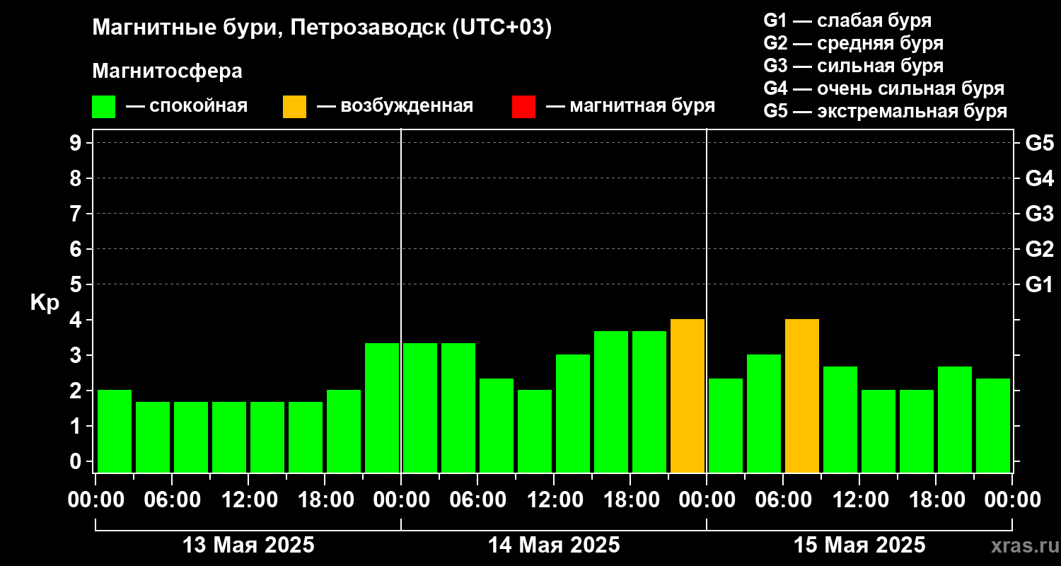 Магнитные бури в Петрозаводске 15 мая 2025 года