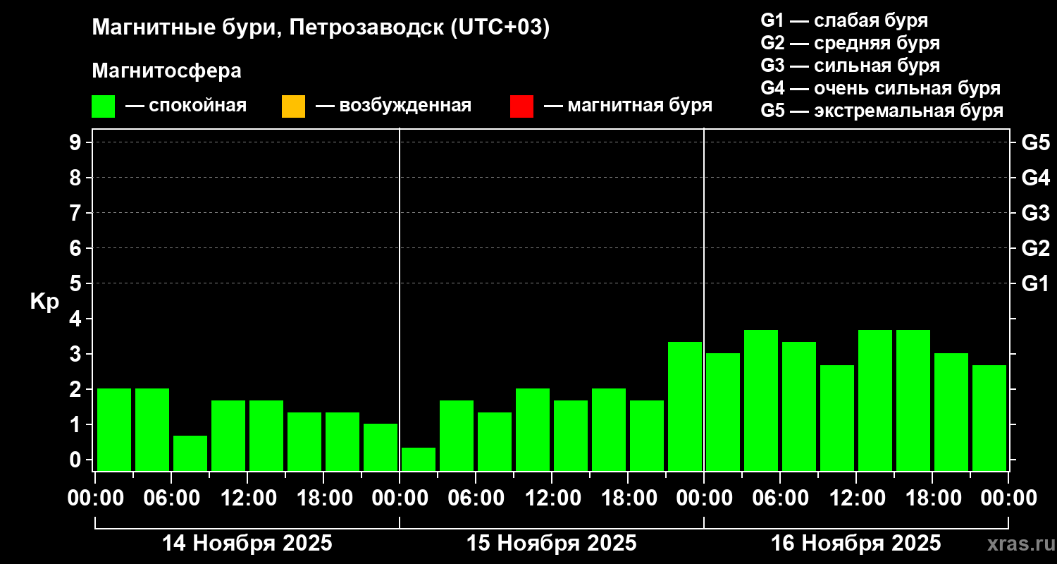 Магнитные бури в Петрозаводске — 16 ноября 2025 года