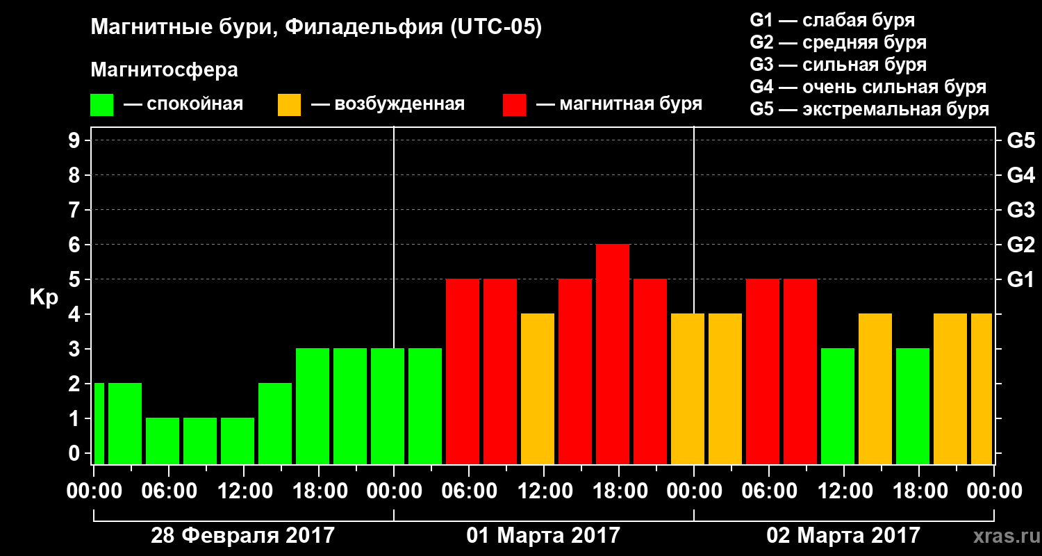 Магнитные бури в Филадельфии 2 марта 2017 года