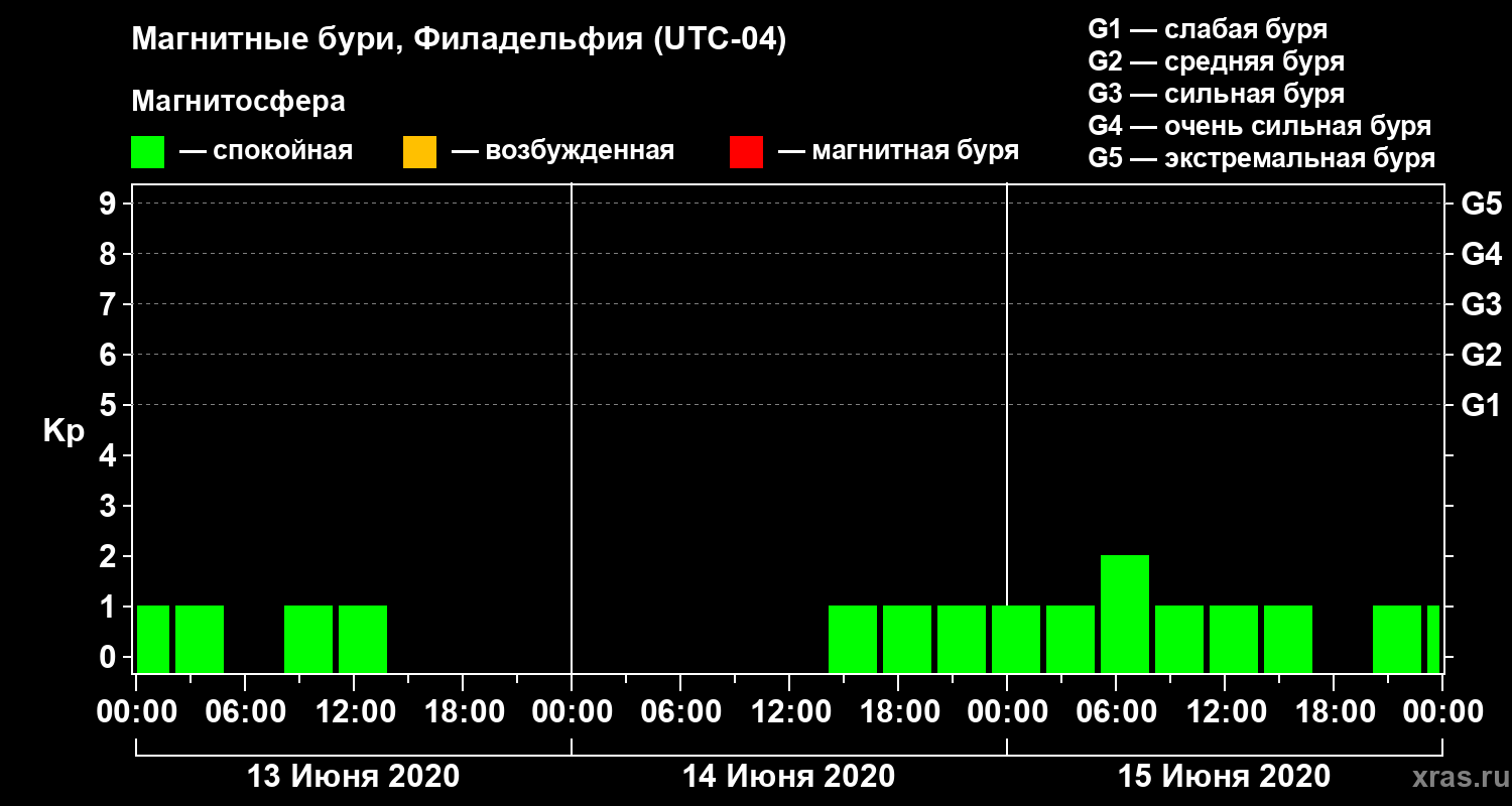 Магнитные бури в Филадельфии 15 июня 2020 года